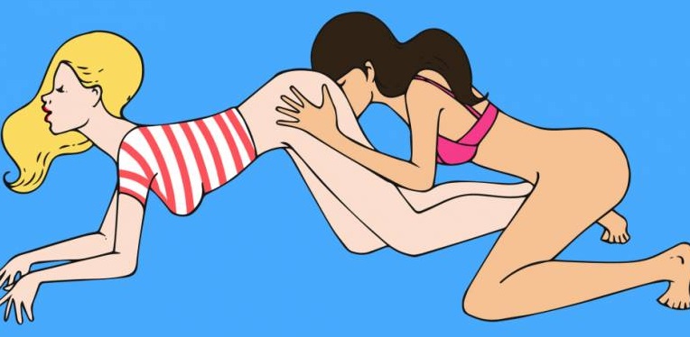 Tra le 28 posizioni ci sono le classiche “Laconic Lounger”, in cui una delle due partner strofina la clitoride con una mano e il seno con l’altra, il “69” e “le forbici”, la posizione del “poliziotto” (con le mani legate dalle manette), quella della “cowgirl” (che monta) e via dicendo.