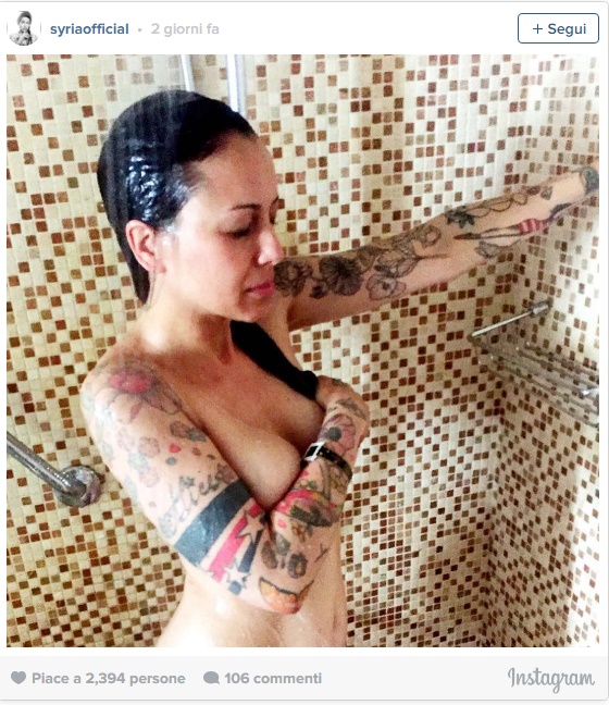 Syria si era fatta fotografare senza veli e sotto il getto della doccia dal marito, il deejay e produttore radiofonico Pierpaolo Peroni. A corredo dello scatto pubblicato su Instagram dalla cantante romana, era comparso solo un hashtag (“#primaverasound”) e qualche faccina. Il braccio copre il seno, il taglio “strategico” della foto copre invece le parti basse. Syria, vero nome Cecilia Cipressi dimostra di mantenersi in forma. Madre di due figli, Cecilia ha un corpo perfetto.