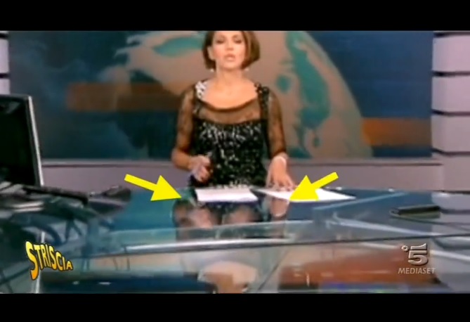 “sedute dietro la scrivania, con la consueta aria professionale, complice il riflesso del vetro, le rigorosissime conduttrici hanno offerto ai telespettatori molto di più della semplice informazione serale: biancheria sexy e notizie, un mix letale che magari non si confà a un telegiornale istituzionale come quello di Canale5. Urge cambiare scrivania o almeno renderla più opaca”.