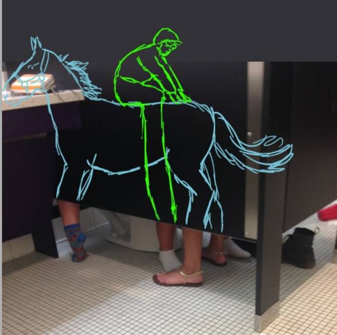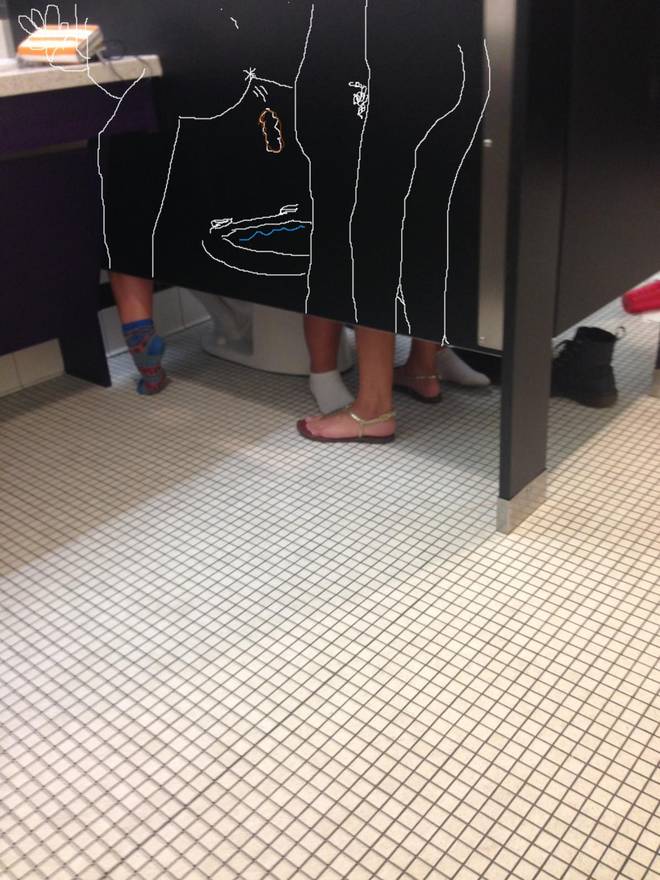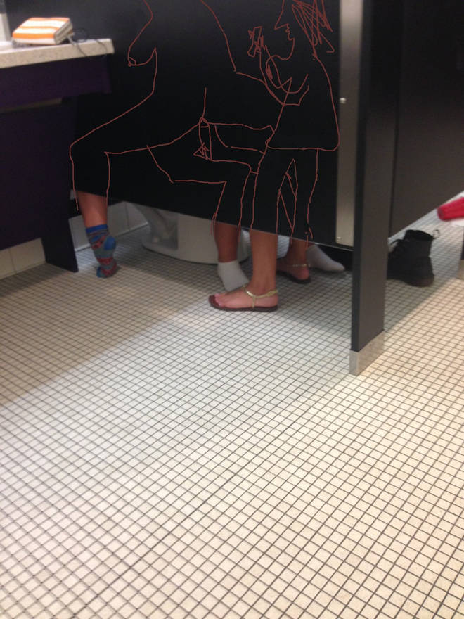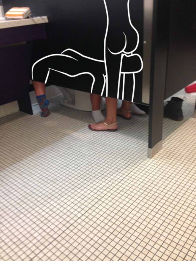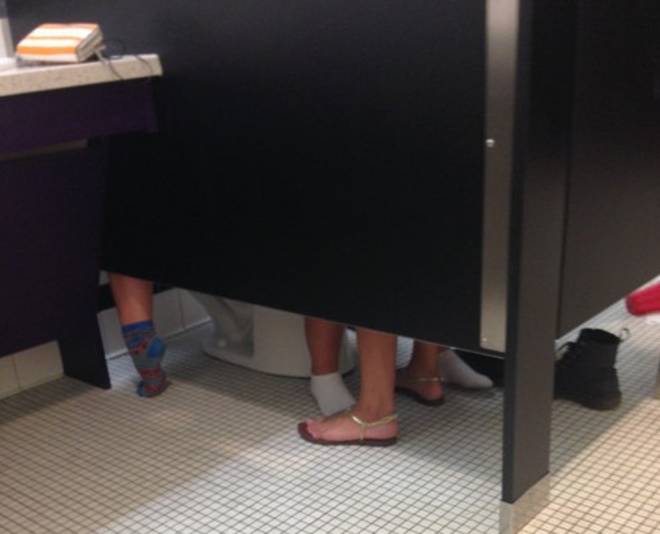 LONDRA – Una toilette, cinque gambe. Sui social network il dibattito sulla foto è aperto: cosa sta succedendo in questa toilette?
