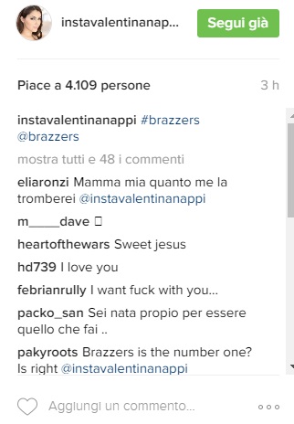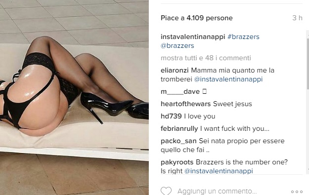 ROMA – L’ultima fotografia pubblicata da Valentina Nappi sul suo profilo Instagram è decisamente sconsigliata ai deboli di cuore. L’attrice porno napoletana fasciata in un “vestito”, ovvero lembi di stoffa neri, autoreggenti e tacchi a spillo.