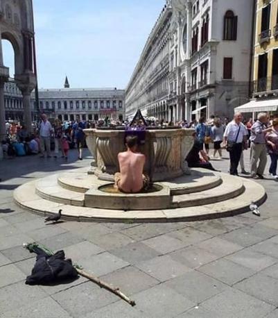 La scena si ripete praticamente ogni giorno”.“La città, i suoi residenti e (bisogna dirlo) anche buona parte di turisti, iniziano a non poterne davvero più. Quest’anno, forse complice anche il grande caldo che attanaglia la laguna dai primi di luglio, il bestiario è particolarmente vario. Così, oltre ai consueti turisti scamiciati, grazie alle ‘sentinelle’ di due gruppi Facebook (‘Via il gabbiotto dal campanile’ e ‘Venice Summer Outfits’) possiamo ammirare un panorama vasto. Fatto di gente che, distesa, prende il sole in piazza San Marco, che fa il bagno (nudi o vestiti, o in topless: tutte le varianti sono presenti) tra il Canal Grande e l’isola di Sant’Elena a due passi dallo stadio. Oppure si rinfresca facendo qualche bracciata tra i canali. Non mancano gli angoli-wc. Ricordate la foto della pipì nel cestino dell’anno scorso? Bene, quest’anno il menu veneziano si amplia e offre gabinetti a cielo aperto tra la stazione Santa Lucia e piazzale Roma”.