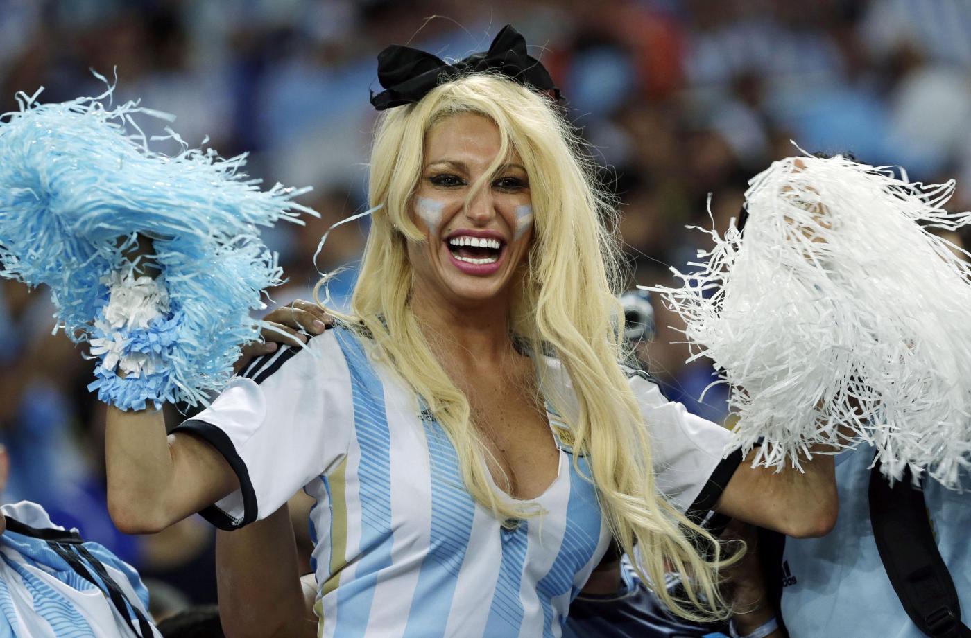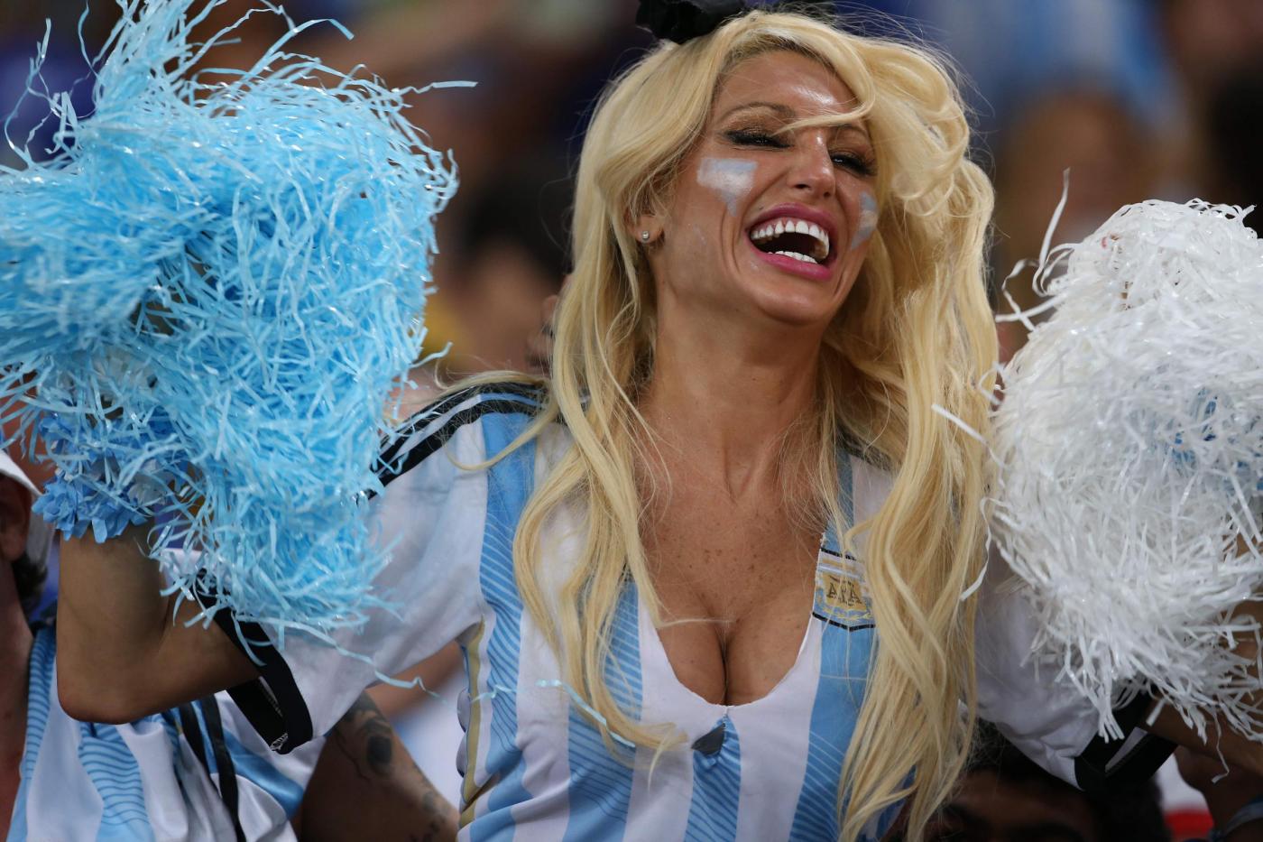 Presente sugli spalti dello storico impianto di Rio de Janeiro per assistere al match fra la sua Argentina e la Bosnia, la sexy Viky si è mostrata in tutto il suo splendore indossando la maglia numero 10 di Messi con una generosa scollatura che ha lasciato ben poco all’immaginazione.