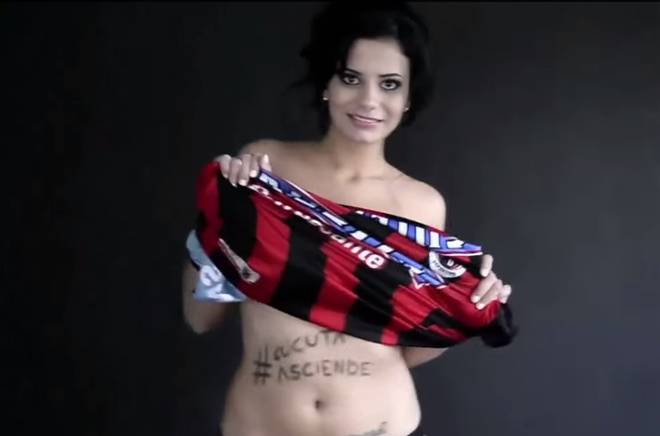 Alejandra è da sempre una tifosa del Cùcuta, il club della sua città natale che di certo non figura tra le ‘nobili’ del calcio colombiano. La promessa solenne per amore della maglia, la giornalista l’ha fatta non appena si intravedevano le possibilità di promozione imponendosi ai play-off, ed ora è stata costretta a spogliarsi. La bella colombiana ha posato per SoHo, la rivista per cui lavora, con la maglia del club che poi è andata via per rimanere in lingerie sexy e pose mozzafiato.