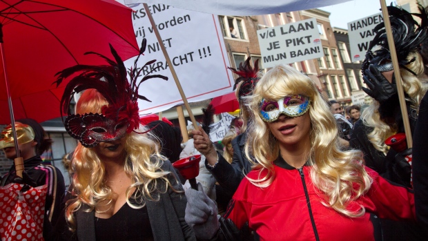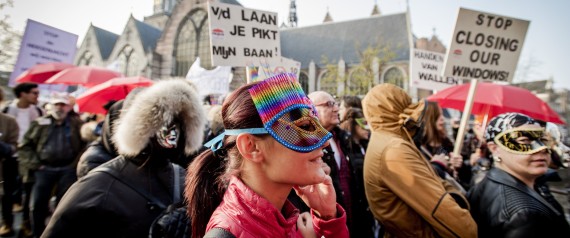 AMSTERDAM – Le prostitute del quartiere a luci rosse di Amsterdam sfilano in strada non per lavoro ma per protestare contro la chiusura delle “vetrine” in cui si espongono.