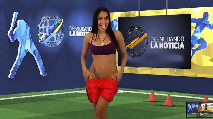 Yuvi Pallares si spoglia in trasmissione. Video YouTube, Venezuela: giornaliste nude per Copa America.
