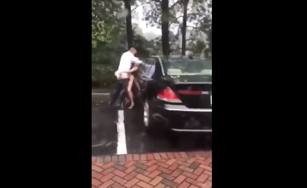 ATLANTA – Una coppia di Atlanta non riesce a contenersi e, malgrado stia piovendo, si apparta accanto ad un’auto, probabilmente la loro, per consumare un rapporto, senza preoccuparsi minimamente di trovarsi in un luogo pubblico.