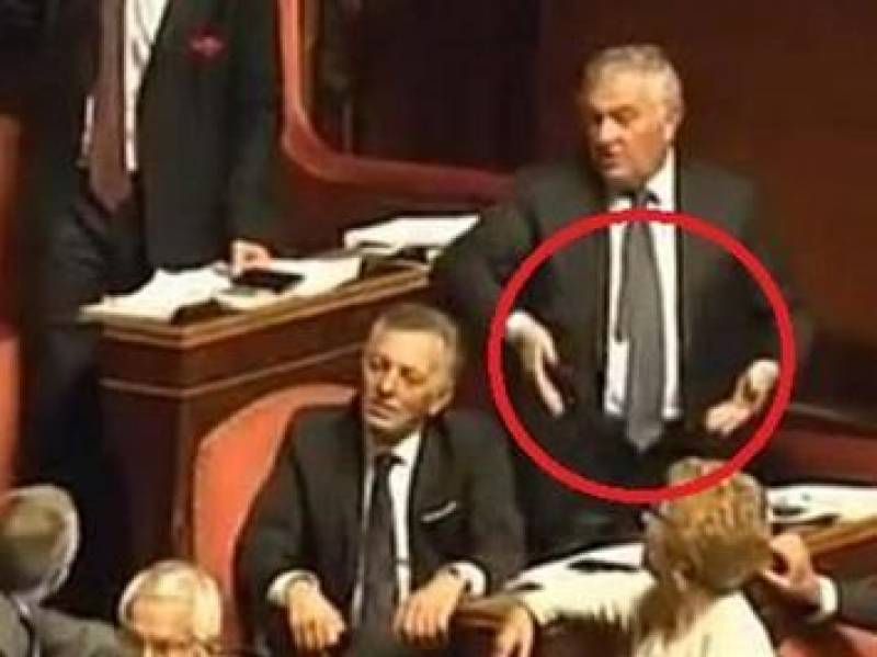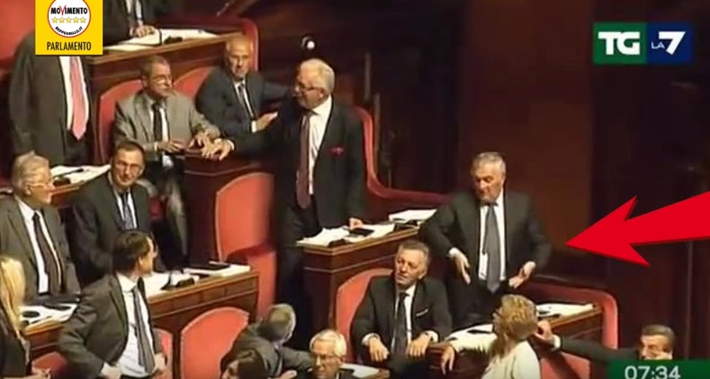 Ecco il video diffuso da La7, quello che in gergo calcistico viene definita “prova tv”. Il filmato girato tra i banchi del Senato è inequivocabile: si vedono i due che urlano rivolti verso le postazioni dei grillini. Poi D’Anna mette le mani a imbuto verso le proprie pudenda e in Aula scoppia la bagarre.