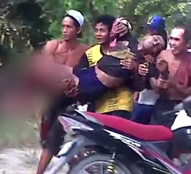 Il momento viene immortalato da una traballante fotocamera che mostra chiaramente il panico che stanno vivendo queste persone. L’uomo ferito e semi incoscente viene sdraiato su alcuni scooter parcheggiati accanto al lago.
