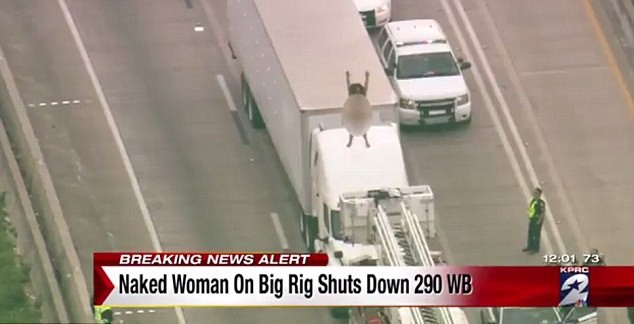 HOUSTON – Una donna sale nuda su un camion sulla Highway 290 di Houston. Secondo quanto racconta il Daily Mail, la donna sarebbe salita sul camion a seguito di un tamponamento avvenuto sulla stessa strada in cui un pedone sarebbe stato investito. La polizia è arrivata sulla scena insieme ai pompieri che hanno provato a far scendere la donna tramite una scala.
