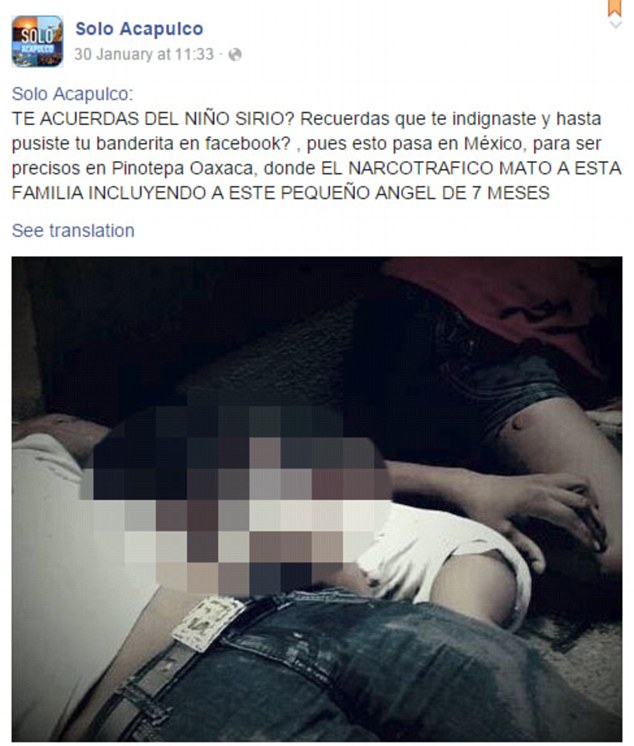 La posizione nella quale è stato ritratto il piccolo ricorda quella di Aylan: il corpicino, sul quale si vedono chiaramente delle macchie di sangue, è rivolto verso terra. Accanto a lui ci sono i corpi dei genitori. Sulle reti sociali il caso dell'”Aylan messicano” è diventato virale con commenti quali per esempio ‘Ti ricordi di Aylan? Questo è quanto succede qui da noi’, ‘Il bebè ucciso non è siriano, è messicano’, ‘metterai ancora la nostra bandiera sul tuo profilo?’