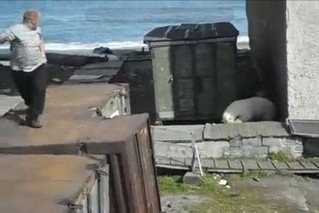 CAPE SCHMIDT – Un uomo afferra un cane e lo getta in un recinto in cui si trova un orso polare. E’ avvenuto in un impianto costiero della regione artica russa: il filmato ripreso anche dal Daily Mail ha indignato gli internauti. L’orso, come mostra il filmato attacca il cane con gli artigli. Non è però da escludere il fatto che il cane possa aver abbandonato la scena dato che nel video sembra scomparire sotto ad un muretto che copre la scena.