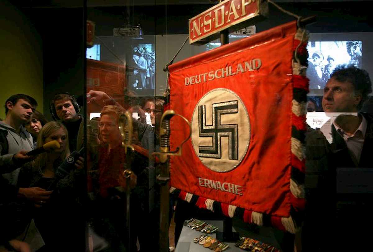 Vessillo con svastica da una mostra su Hitler, il nazismo e i tedeschi (Foto Archivio Ansa)