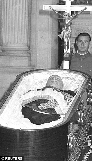Il generale è sepolto ai piedi dell’altare della basilica di Valle de los caidos (Valle dei caduti), sacrario dedicato alle 500.000 vittime della Guerra Civile spagnola. La croce di 150 metri della basilica, la più alta croce cristiana del mondo, costruita dai prigionieri di guerra nel corso di 19 anni, sovrasta la Sierra Guadarrama, una catena montuosa a ovest di Madrid, spiega il Daily Mail.