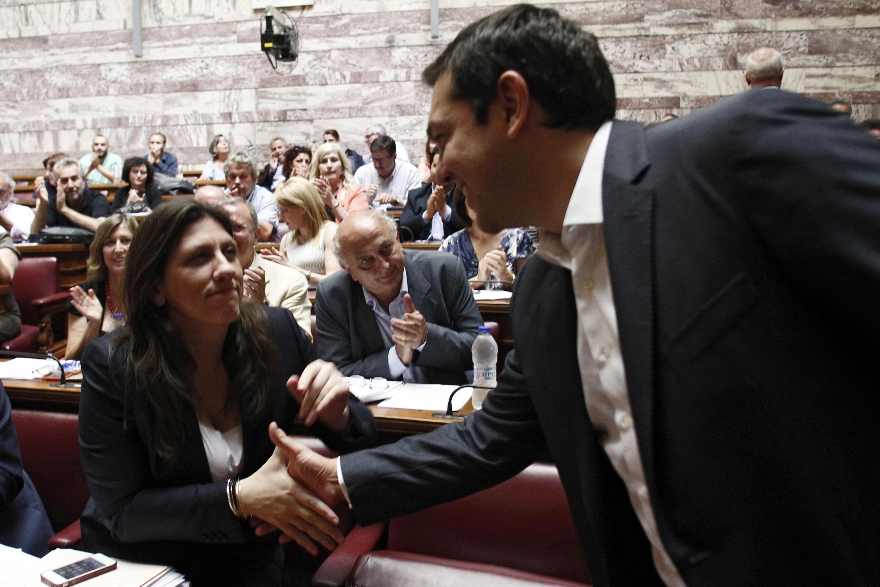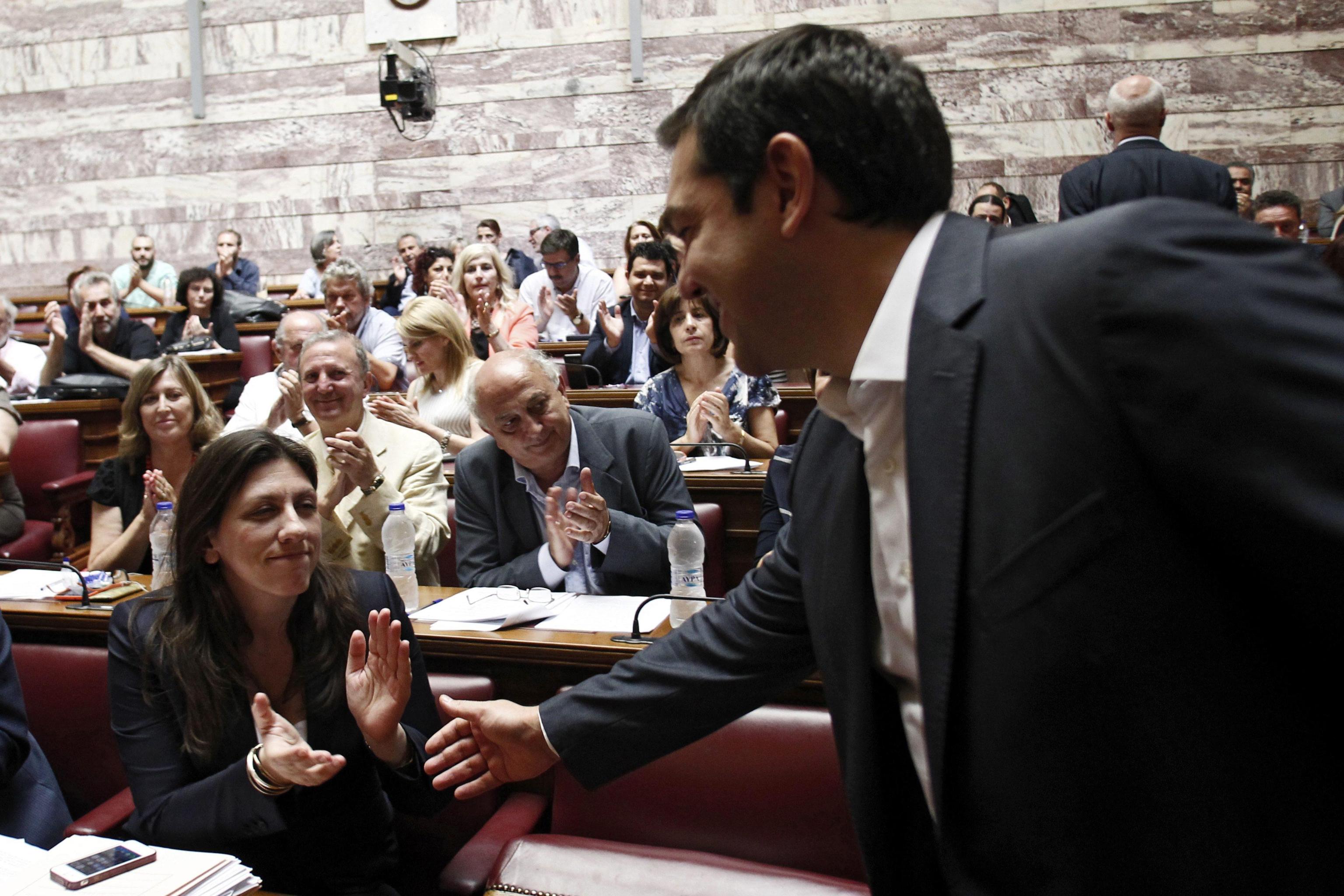 Tsipras ha preferito giocare d’attacco: “Senza il vostro sostegno (nel voto di stasera) sarĆ difficile per me restare premier” riporta il sito iEfimerida.gr. “O stasera siamo uniti, o domani cade il governo di sinistra”, ha aggiunto, dicendo ai suoi deputati che “Se qualcuno ha una soluzione alternativa, me la dica”. Il Guardian da AteneĀ ha scrittoĀ che il premier ĆØ stato accolto alla riunione da un grande applauso “segno – dice il giornale – che la sua richiesta di appoggio potrebbe funzionare”. Altro segnale: Zoe Konstantopoulou, la presidente del parlamento e voce critica verso l’accordo, ĆØ corsa ad abbracciarlo.
