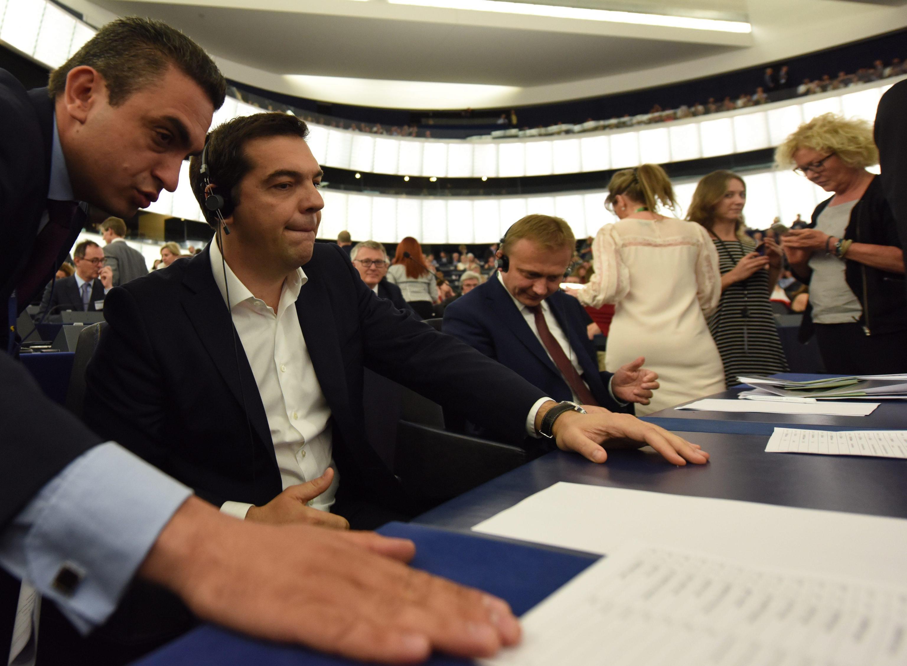 “Le riforme ed il memorandum non hanno portato alla giustizia fiscale. Per decenni i governi greci hanno governato in modo clientelare, ed hanno sostenuto la corruzione e alimentato l’evasione fiscale. Foto Ansa del discorso di Tsipras a Strasburgo.