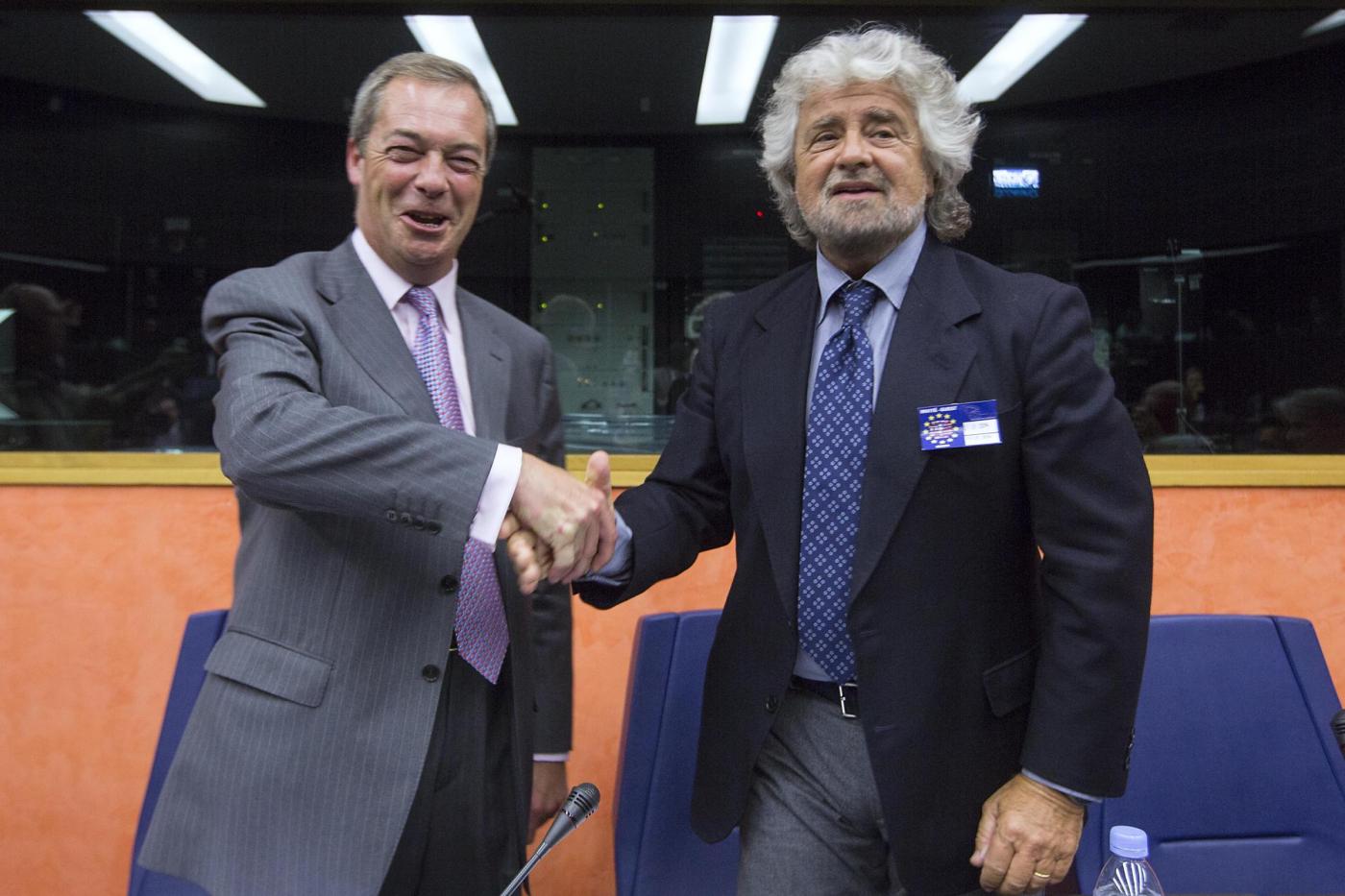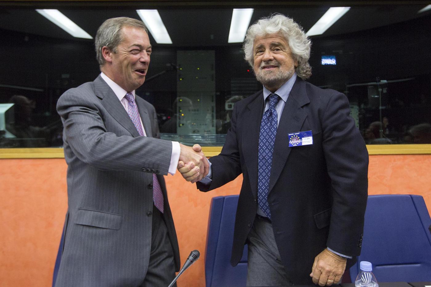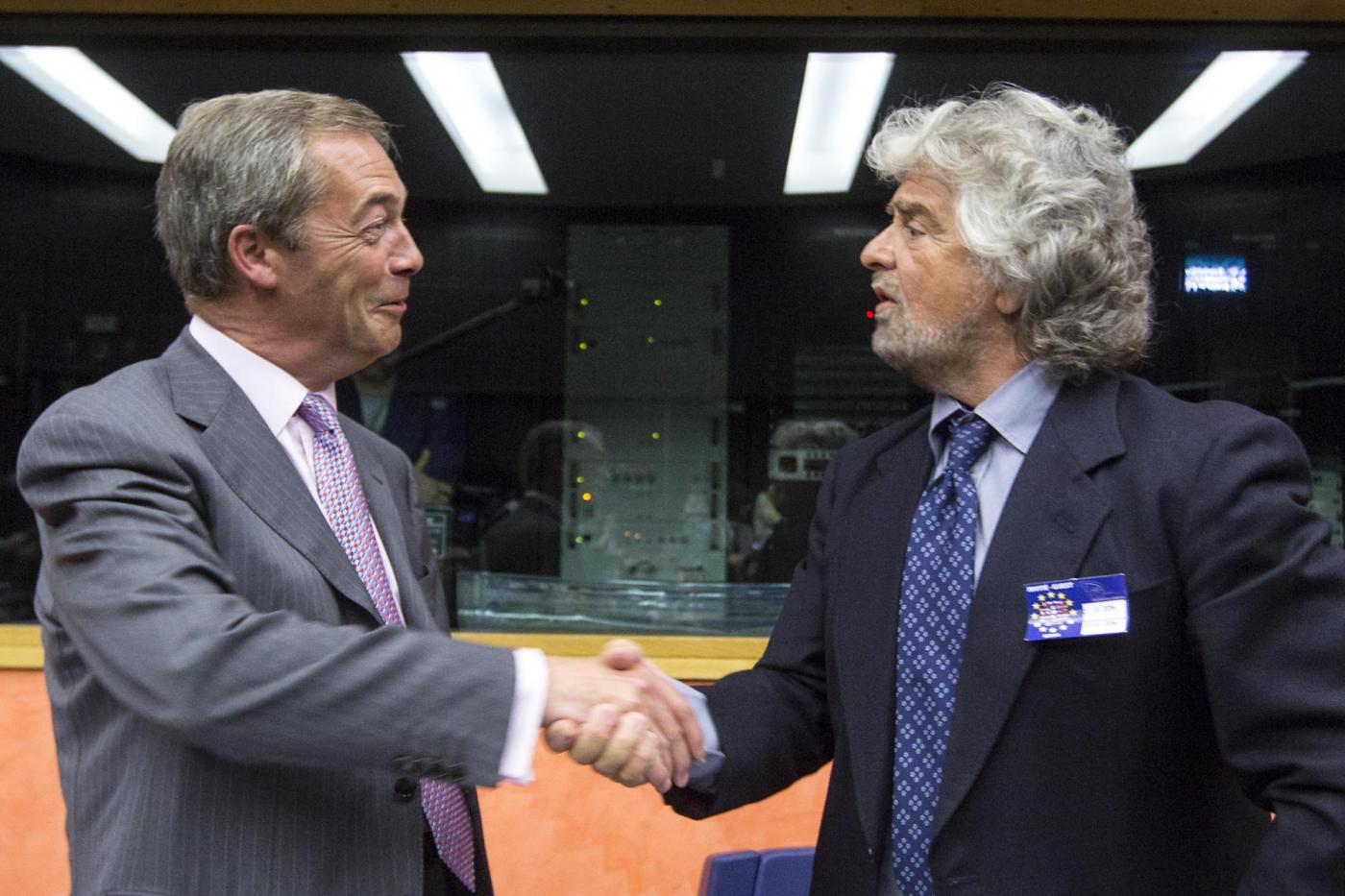Beppe Grillo con Nigel Farage (foto LaPresse)
