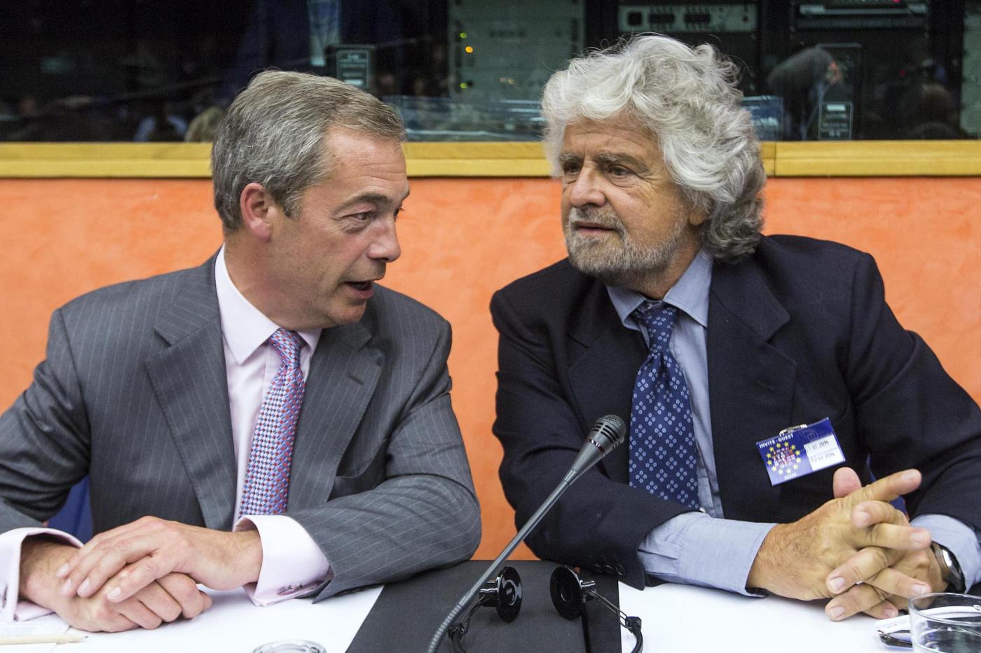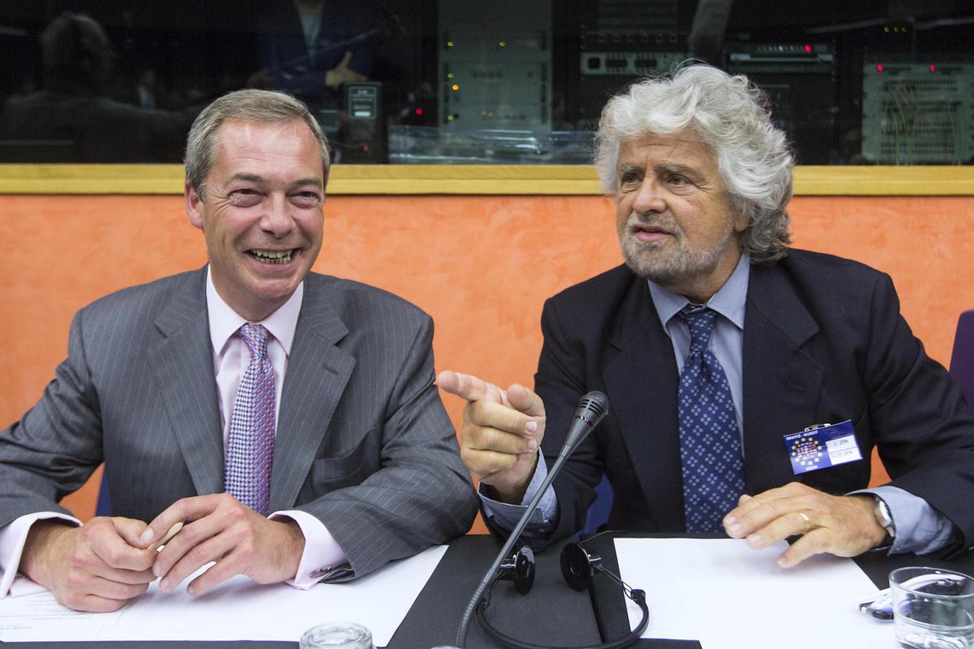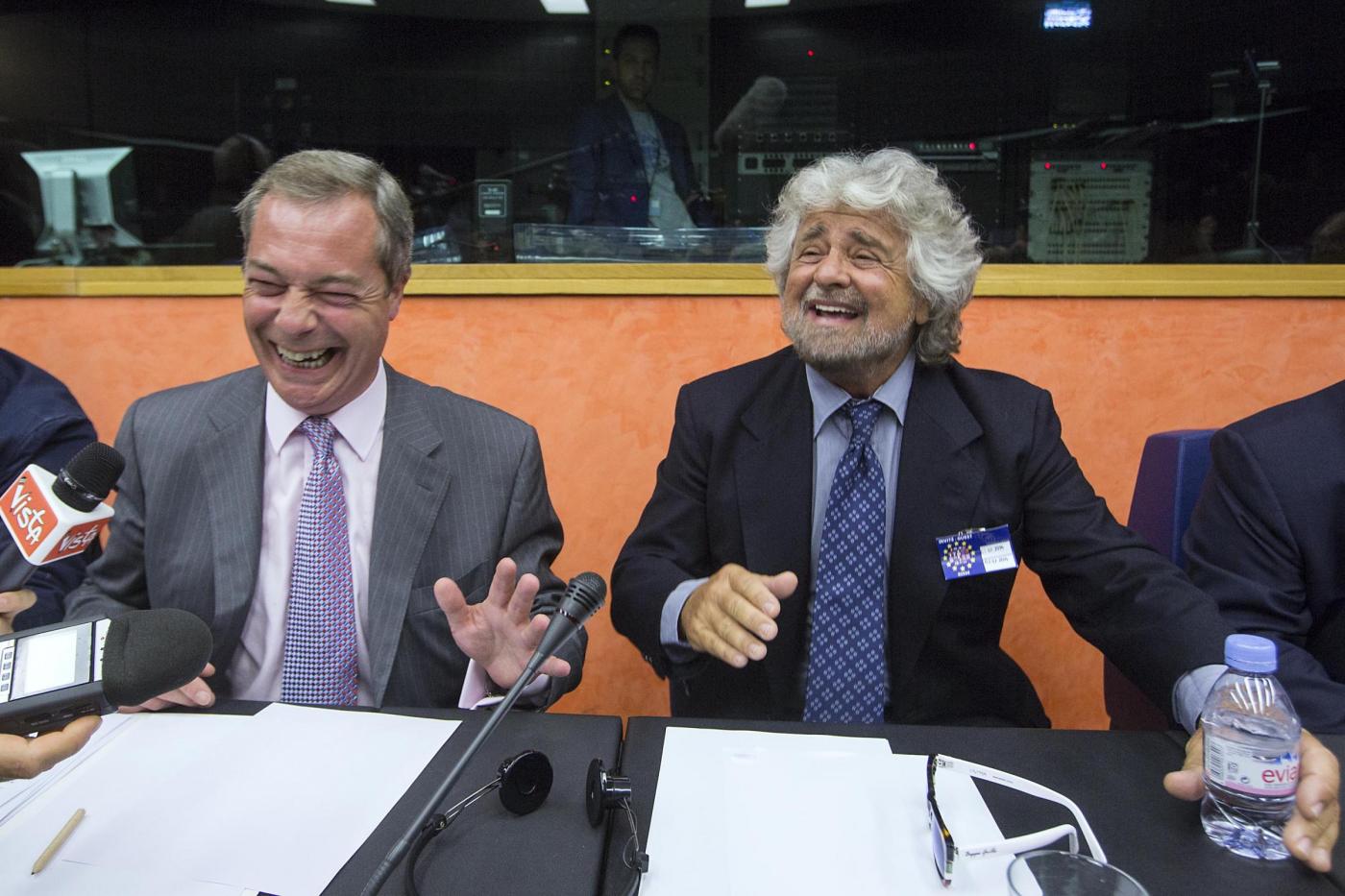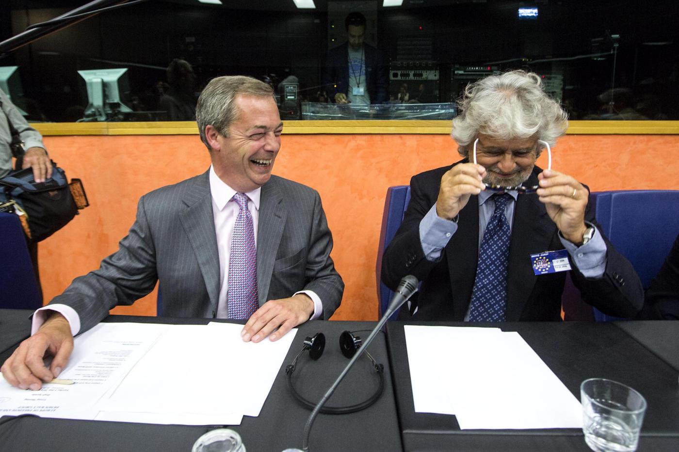 Beppe Grillo con Nigel Farage (foto LaPresse)