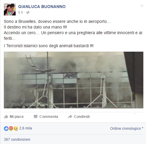 Solo un impegno prolungato in Comune mi ha fatto cambiare agenda e orari e posticipare il ritorno. Il mio pensiero va alle vittime ed ai feriti di questi ignobili attacchi. Questo è il risultato del buonismo e della tolleranza, basta solo camminare per Bruxelles per rendersi conto che la capitale d’Europa è ormai diventata una città araba!