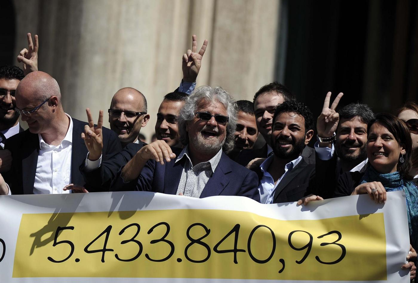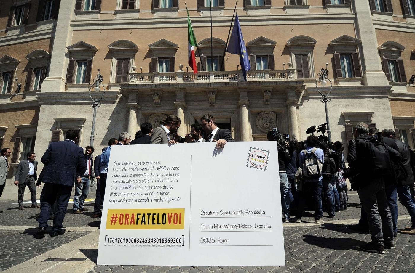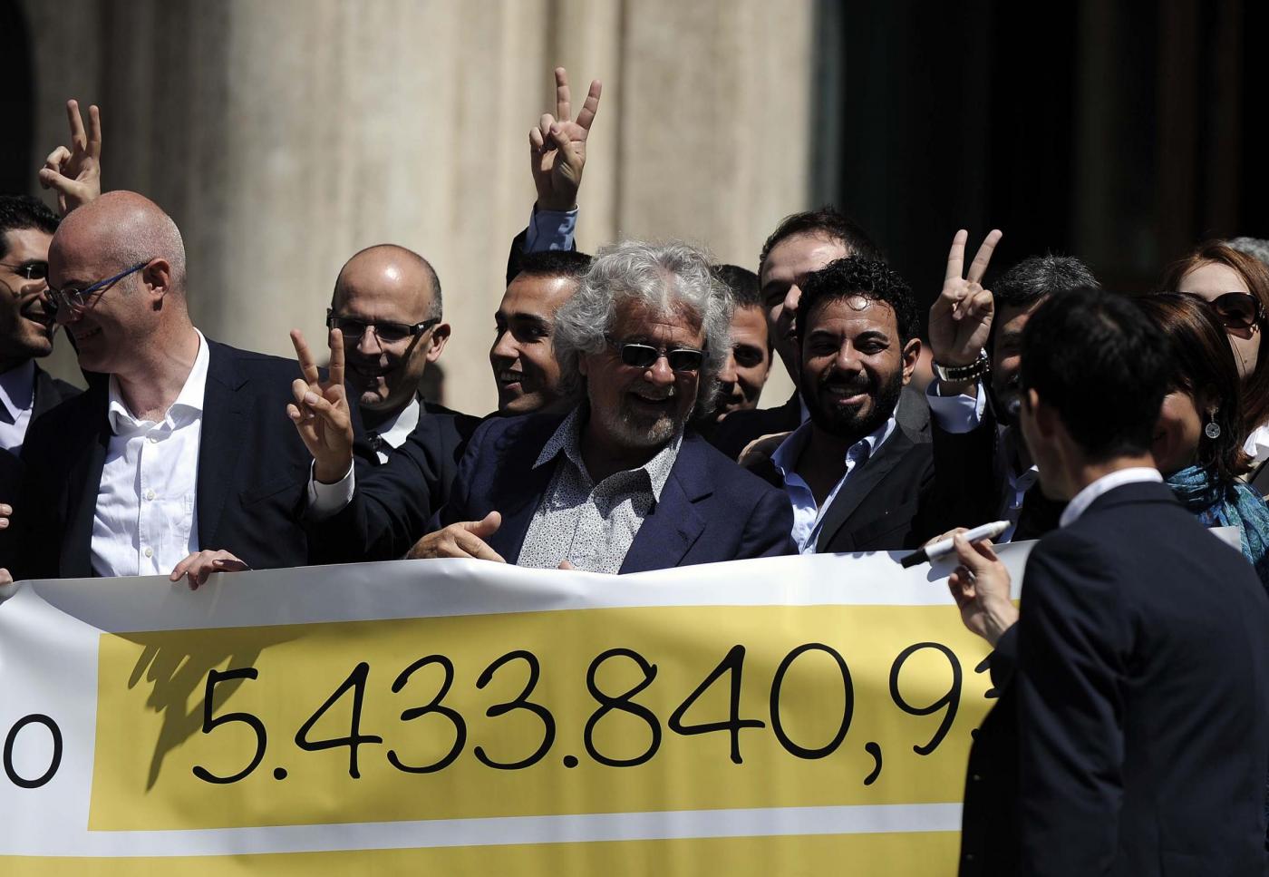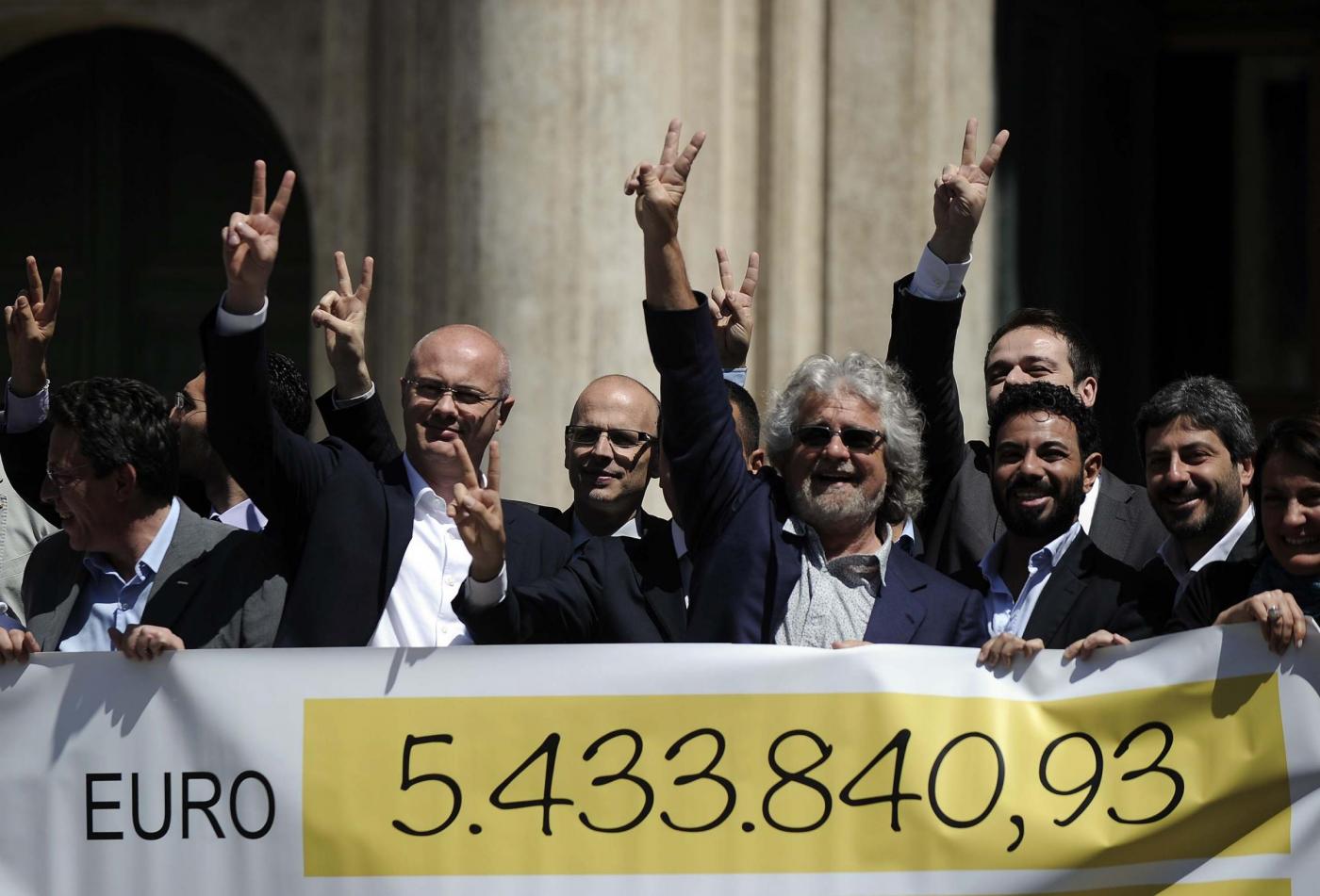 ROMA – “Andremo sotto il Quirinale perché Giorgio Napolitano è delegittimato“. Beppe Grillo lo annuncia dalla piazza davanti Montecitorio il 20 maggio durante il discorso per il Restitution Day, in cui i parlamentari del Movimento 5 stelle consegnano un assegno da 5 milioni e mezzo di euro al fondo costituito per le Piccole e medie imprese.