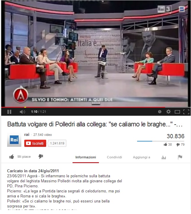Il problema della soi disant “testarda” campana, che sul curriculum si presenta come “comunicatrice d’impresa” e “autrice di testi televisivi”, è che non le dispiace affatto di buttarsi nella mischia dei talk show. Dove però le possono capitare avversari come il gentleman leghista Massimo Polledri. Era il 2011, governo Berlusconi ancora in piedi. Una mattina come tante ad Agorà, Raitre. La Picierno accusò la Lega di un “celodurismo” esibito a Pontida che poi si trasforma a Roma in un “calarsi le braghe” davanti ai diktat berlusconiani. Risposta: “Se ci caliamo le braghe noi, può esserci una bella sorpresa per te”.