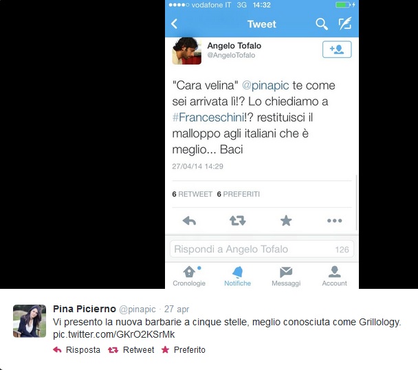 La capolista pd, che sul suo utilizzatissimo profilo Twitter si presenta come “Caratteraccio. Dico sempre quello che penso e sono testarda come un mulo”, è antipatica a molti. Non tutti necessariamente del suo partito. È dello scorso weekend lo scontro col grillino Angelo Tofalo, che (su Twitter, e dove se no?) l’ha accusata di essere una “velina” che “è lì solo grazie a Franceschini”. Nell’arena di Servizio Pubblico l’abbiamo vista beccarsi con Travaglio e la M5S Paola Taverna.