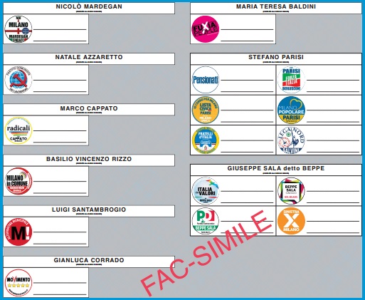 QUESTO IL FAC SIMILE DELLA SCHEDA ELETTORALE DI MILANO
