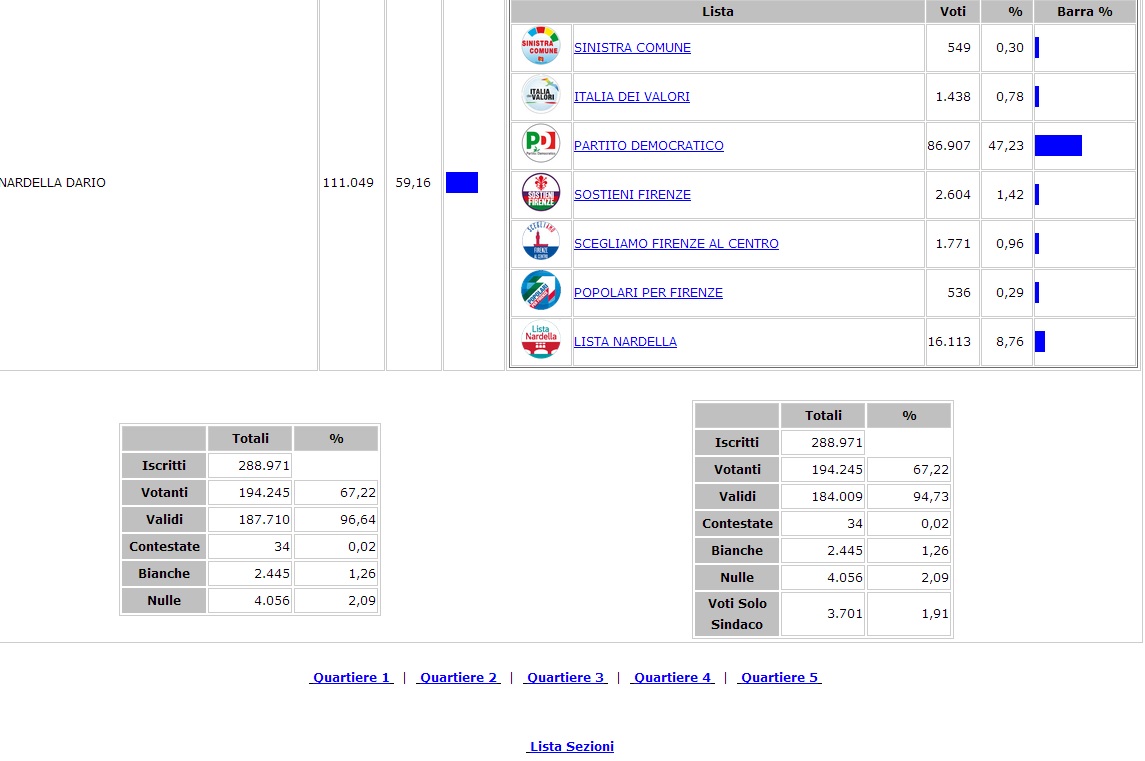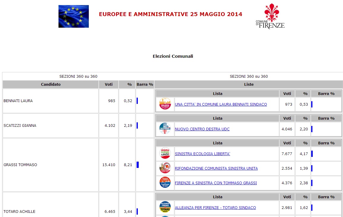 - LISTA CIVICA – SOSTIENI FIRENZE LISTA CIVICA – SOSTIENI FIRENZE 2.604 1,41 –