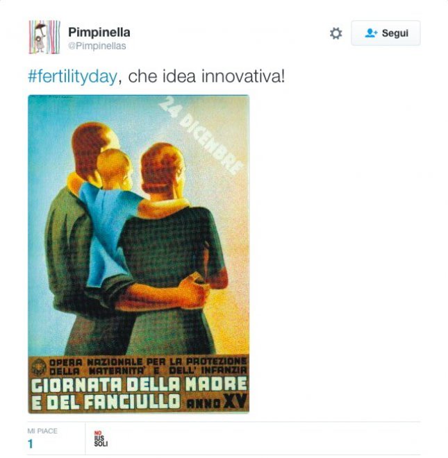 Il messaggio non è stato recepito così dal web, con Saviano tra i primi a scagliarsi contro la campagna e addirittura molte donne che hanno cambiato la propria foto del profilo con la scritta ‘Io sono mia’. “Il #fertilityday è un insulto a tutti – scrive lo scrittore, che fa anche una disamina molto critica dei manifesti pubblicati dal ministero -, a chi non riesce a procreare e a chi vorrebbe ma non ha lavoro. E il 22 mi rovinerà il compleanno”. Due le critiche principali alla campagna, che ha slogan come ‘Sbrigati, non aspettare la cicogna’ o ‘La fertilità è un bene comune’, o ancora ‘Genitori giovani. Il miglior modo di essere creativi’. Da una parte si afferma che il problema principale che ostacola la maternità è di tipo economico, dall’altra si accusano gli slogan di colpevolizzare le donne che, per volontà o per altri problemi, non hanno fatto figli, una retorica che richiama secondo alcuni quella fascista. “In un Paese con il tasso di disoccupazione come quello italiano, dove chi ha talento, ambizioni e speranze emigra – scrive ancora Saviano – dove chi non ha la solidità economica di un famiglia che possa garantire studi e accesso alla professione, lascia il Paese, sembra una presa in giro”.