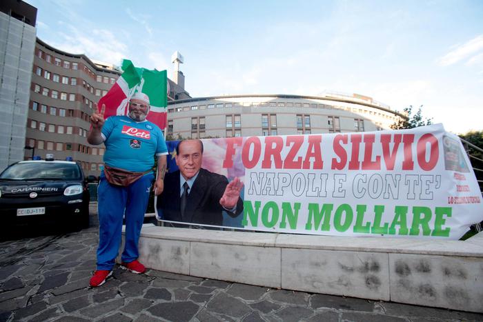 E’ cominciata quindi l’attesa dei familiari (tutti i figli, il fratello Paolo) della fidanzata Francesca Pascale (che si è affacciata tesissima alla finestra dell’ospedale). Davanti al San Raffaele ci sono anche i molti sostenitori che hanno srotolato uno striscione con la scritta “Forza Silvio”.