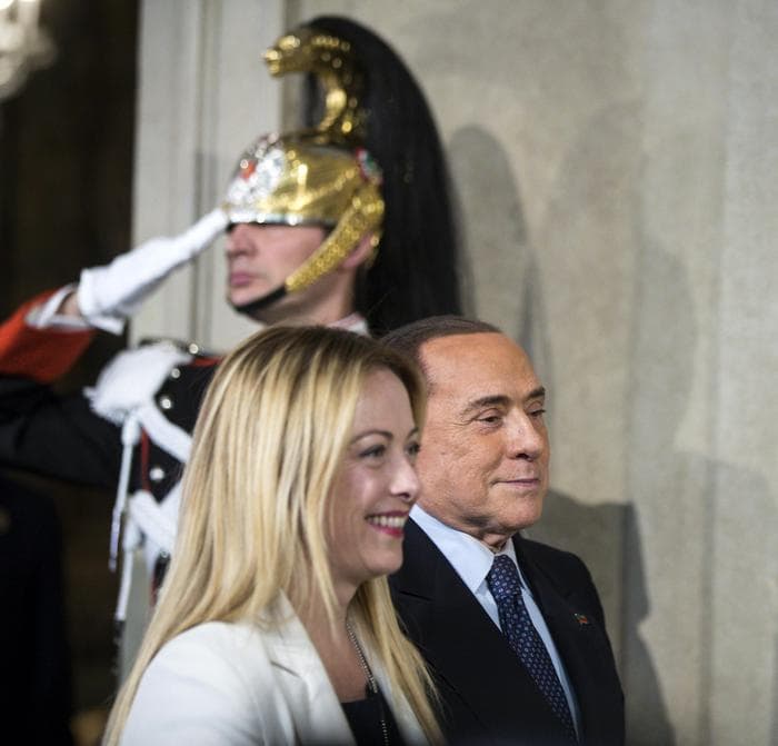 Nella foto Ansa: Berlusconi e Giorgia Meloni. Il leader di Forza Italia ha paura che il nuovo governo metta una patrimoniale