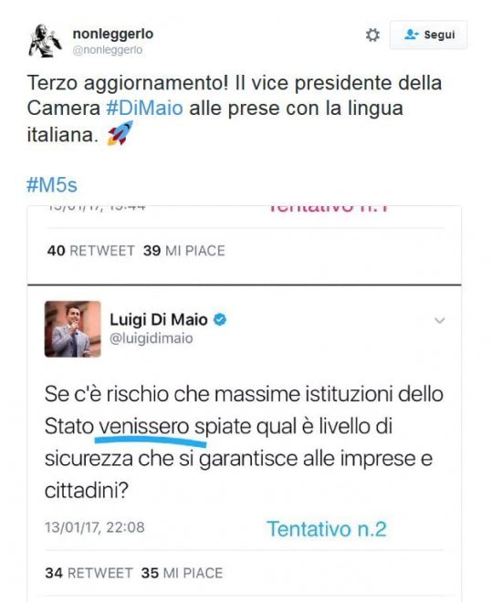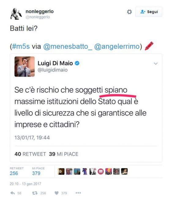 In particolare Di Maio ha scritto “Se c’è rischio che massime istituzioni dello Stato venissero spiate…” e “Se c’è rischio che soggetti spiano massime istituzioni…”