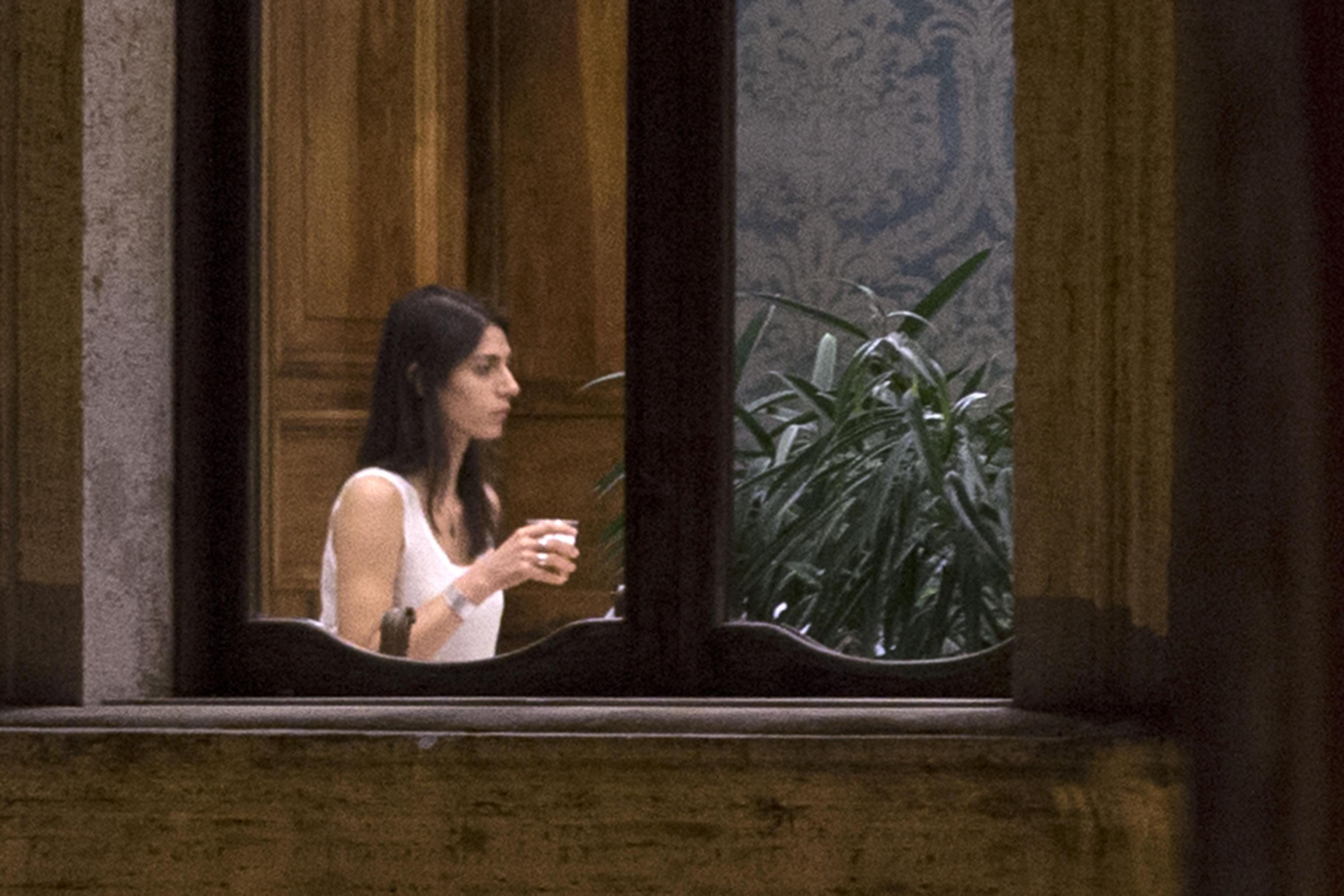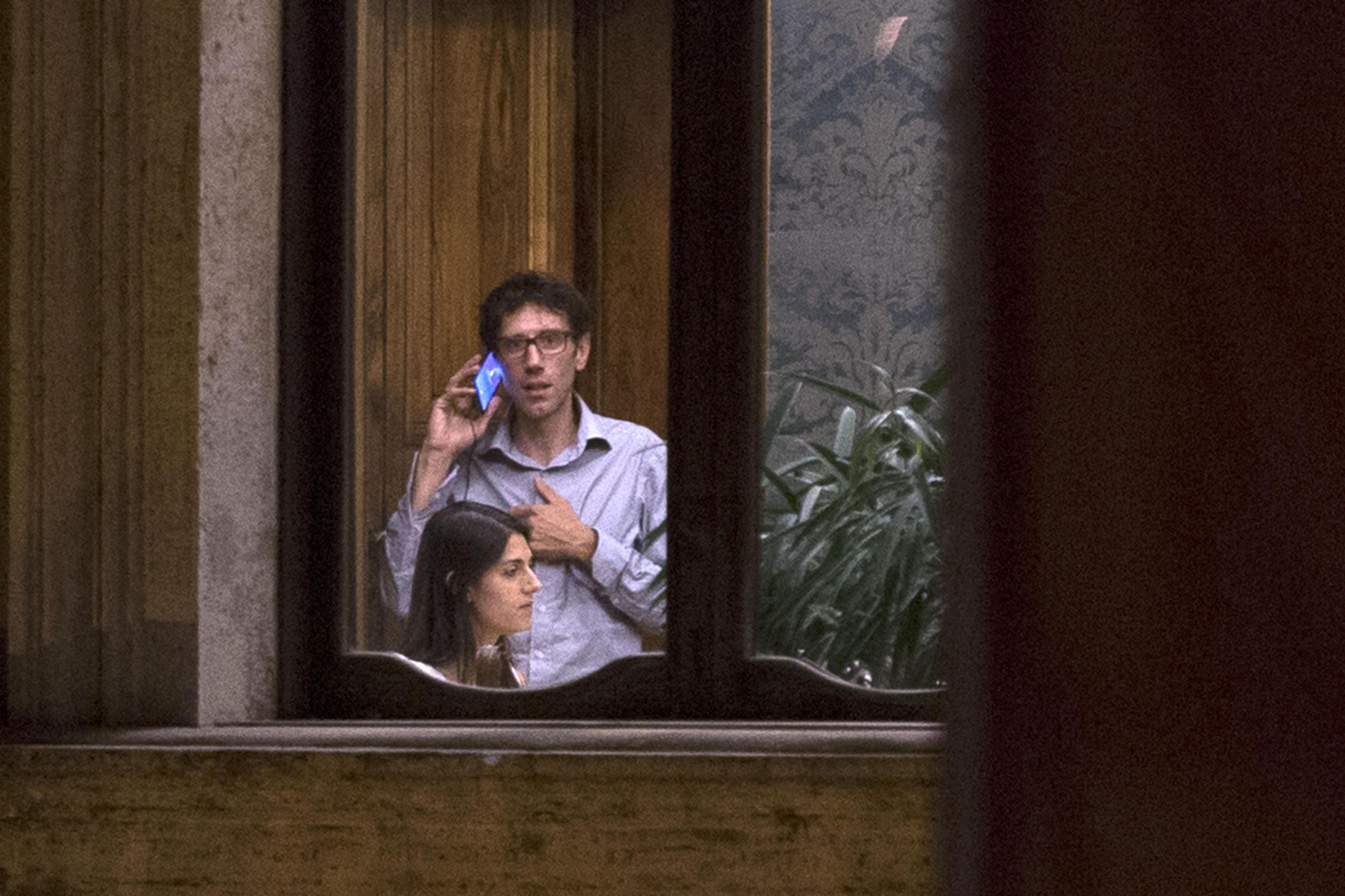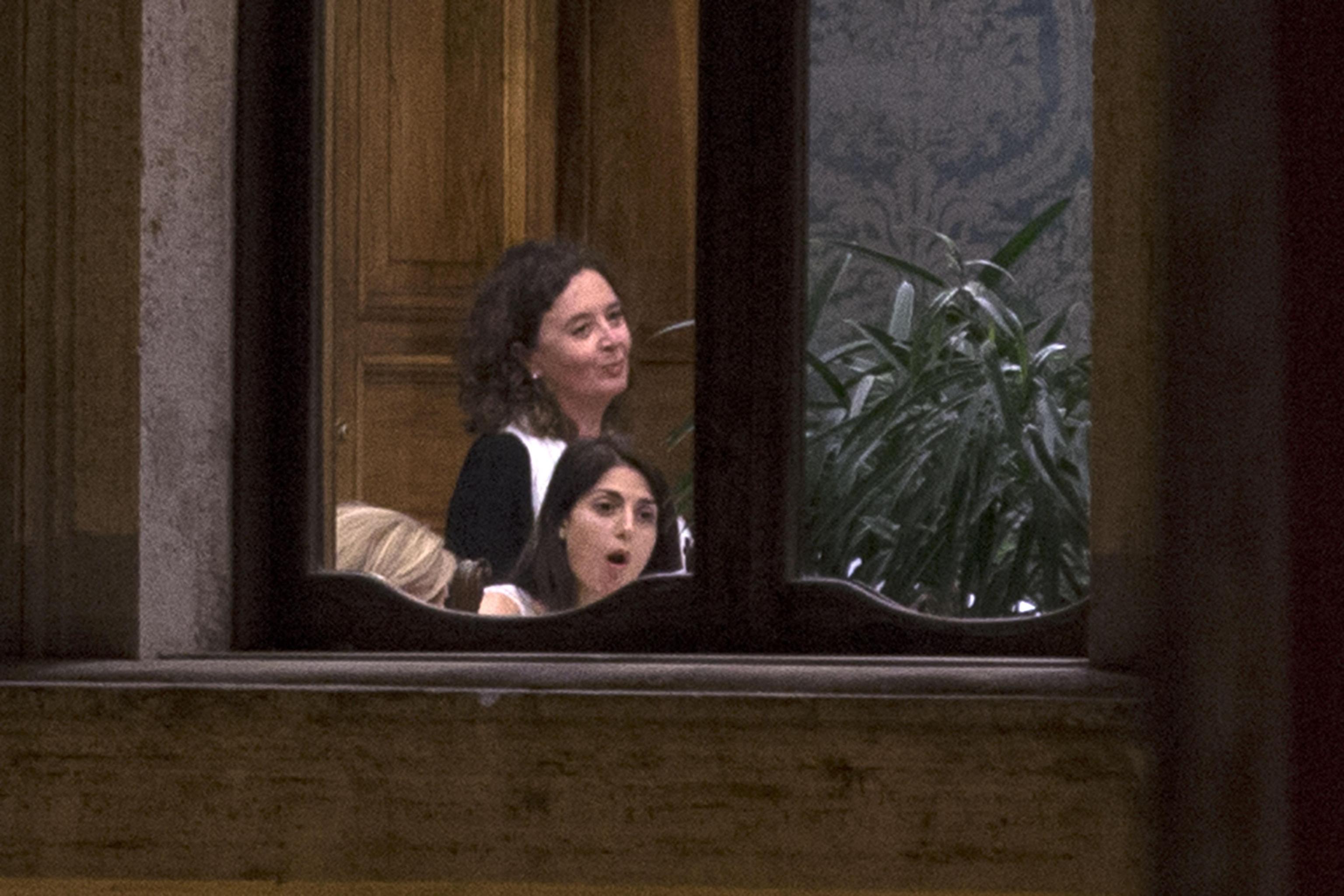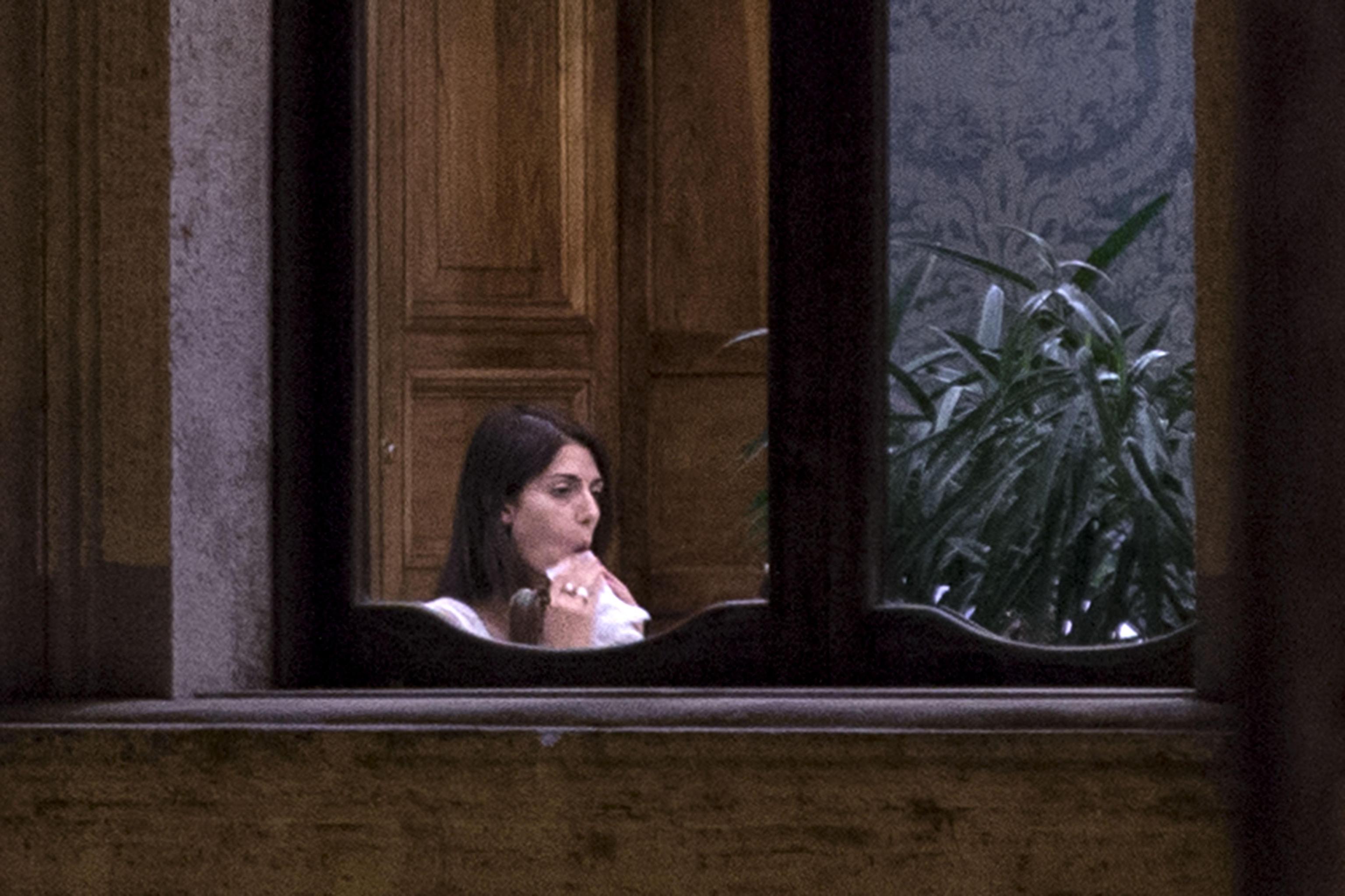 La Raggi fotografata durante una pausa della riunione fiume che si è tenuto nel pomeriggio di martedì 6 settembre (foto Ansa).