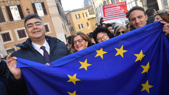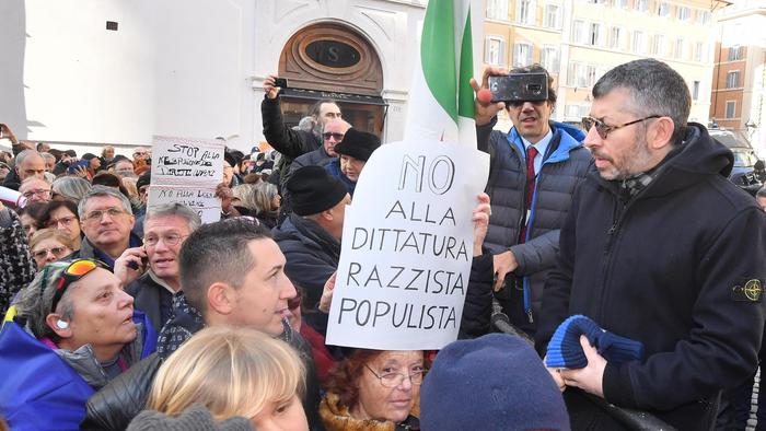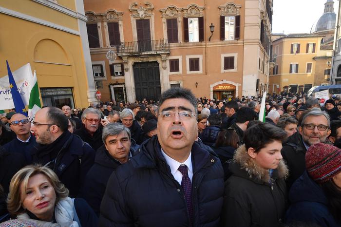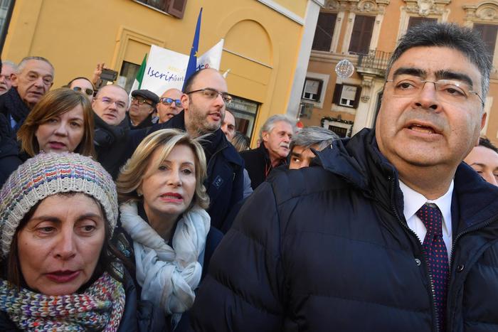 “L’Italia apra gli occhi, Di Maio e Salvini sono come autisti ubriachi che ci portano a sbattere”, ha detto il capogruppo Pd alla Camera Graziano Delrio capeggiando la protesta. “Grazie per essere qui – ha promesso Delrio – E’ l’inizio di un anno di mobilitazione”.