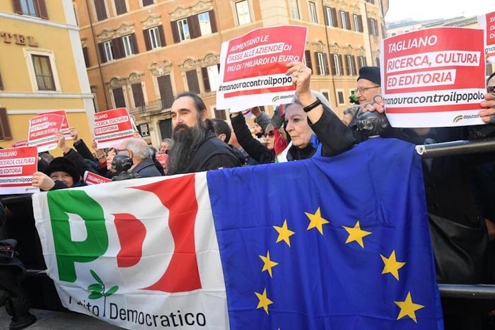 ROMA – Hanno intonato Bella Ciao davanti a Montecitorio e protestano contro i contenuti e il modo in cui si avvia l’approvazione della manovra targata Lega-M5s. E’ cominciato così il sit-in del Pd, radunato con circa duecento manifestanti in piazza davanti alla Camera dei deputati. Numerose persone sventolano bandiere del partito ed espongono cartelli con slogan come “Di Maio e i 5 Stelle ciarlatani dell’onestà”.