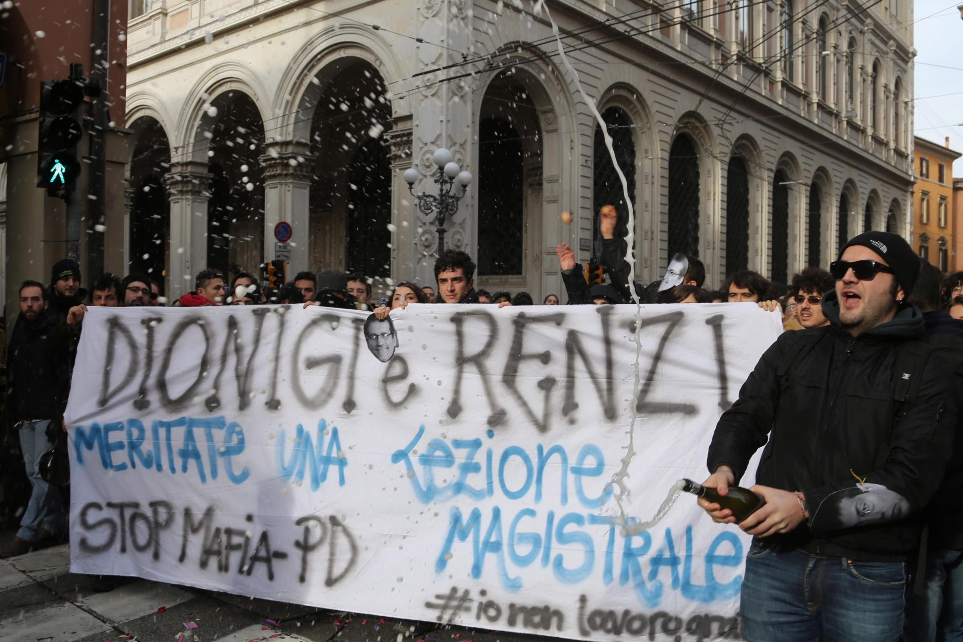 BOLOGNA – Una visita allo stabilimento della Granarolo e una all‘università per l’inaugurazione dell’anno accademico. Nella mattinata di sabato 10 gennaio Matteo Renzi è a Bologna e in entrambe le visite incassa contestazioni: ora dai lavoratori della Cgil che protestano contro il Jobs Act, ora dagli autonomi dei centri sociali.