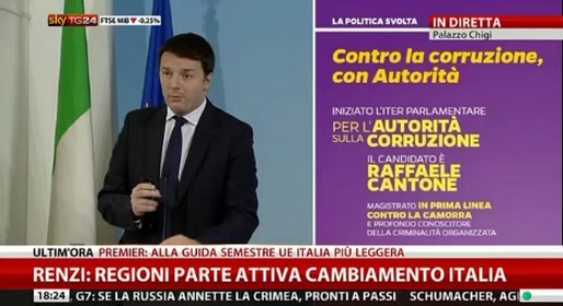 Continua ricordando la nomina del pm Raffaele Cantone alla presidenza di una nuova Authority, quella contro la Corruzione.