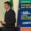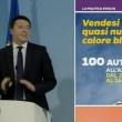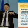 Indica una data, il 1° luglio, in cui l’Italia dovrebbe diventare “più leggera”, grazie a quelle riforme alle quali ha accennato. Accanto a lui scorrono delle slide che spiegano le sue intenzioni in pochi brevi slogan, come in una presentazione aziendale.