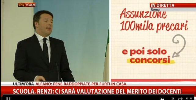 DOPO LE GRADUATORIE ASSUNZIONE SOLO PER CONCORSO. Renzi annuncia: “Esaurite le graduatorie ad esaurimento si fanno i concorsi: chi vince entra, chi perde sta a casa. Basta con la vergognosa attività di utilizzo strumentale delle qualità dei candidati. E’ una rivoluzione strepitosa”.