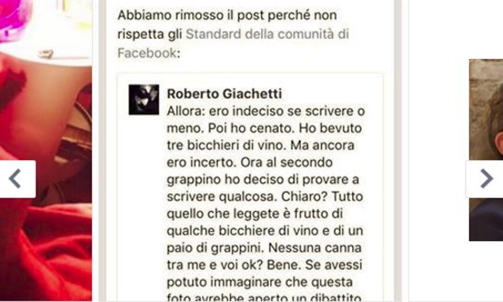 “Ho risposto a queste illazioni con un post, a modo mio, senza offendere nessuno, in modo piccato, certo, ma assolutamente innocuo. Qualche giorno fa Facebook mi ha comunicato che quello stesso post è stato rimosso perché non rispetta gli standard di comunità. Ho cercato di capire quale parte del regolamento non rispettasse, non sono stato in grado di capirlo. Ora, ringrazio chi ha segnalato il mio post cercando così di zittirmi e chi ha deciso di eliminarlo. Detto ciò chiedo a voi di giudicare: ho offeso qualcuno?“