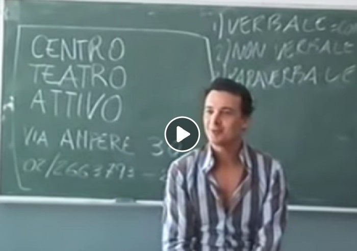 Casalino, siamo nel 2014, sul sito di Beppe Grillo, spiegò anche in quell’occasione che stava recitando. E lo spiegò facendo proprio riferimento a quell’incontro e a quel vecchio personaggio che aveva studiato al “Centro Teatro Attivo”. Tesi che sembrerebbe essere confermata dal fatto che alle spalle di Casalino c’è una lavagna su cui si può leggere Centro Teatro Attivo.
