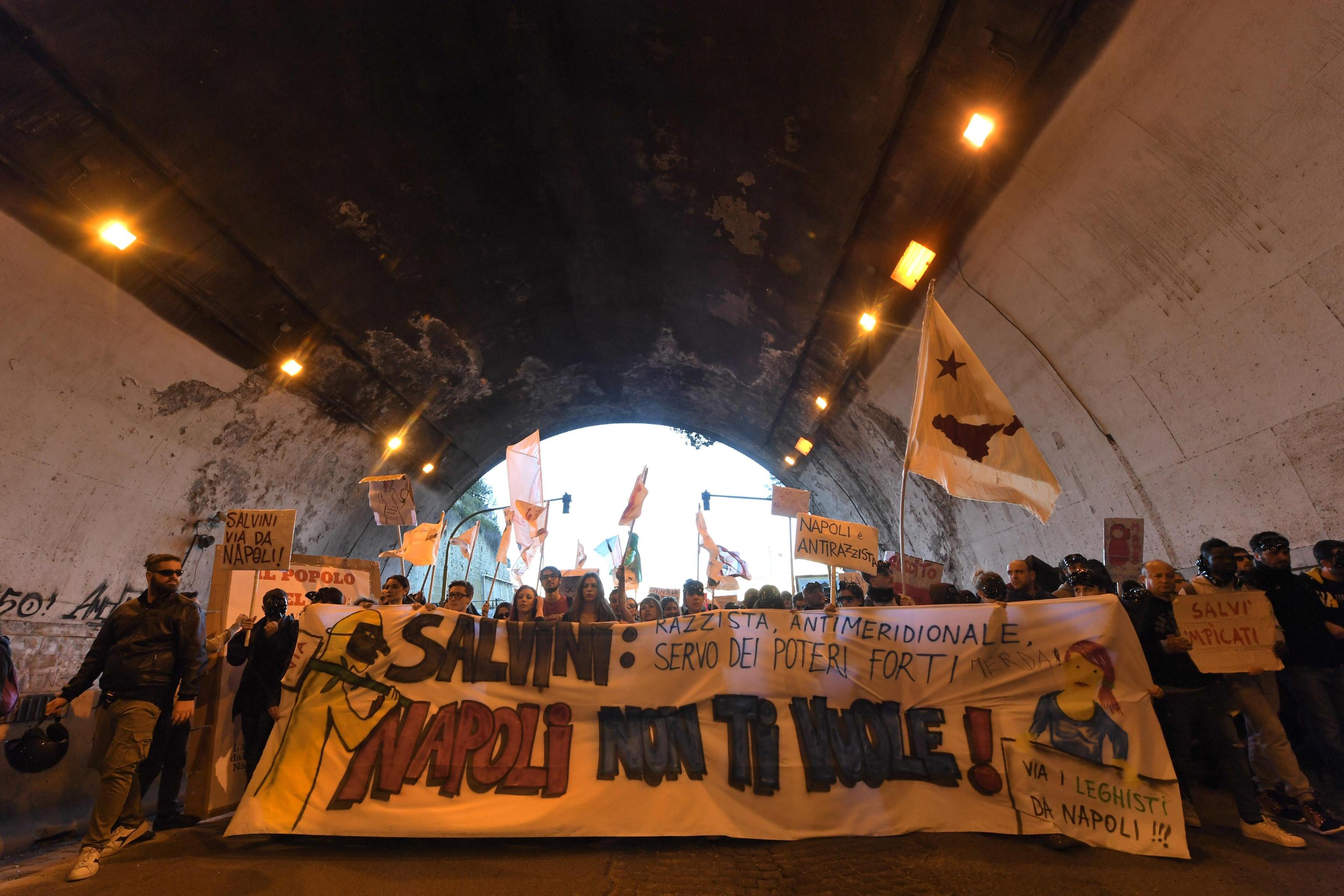 LA GIORNATA – Il corteo pacifico e colorato contro l’arrivo di Matteo Salvini a Napoli è terminato alle 17.30 quando bandiere, musica e cori che avevano caratterizzato fino ad allora la manifestazione, hanno lasciato la scena a molotov, sassi e lacrimogeni.