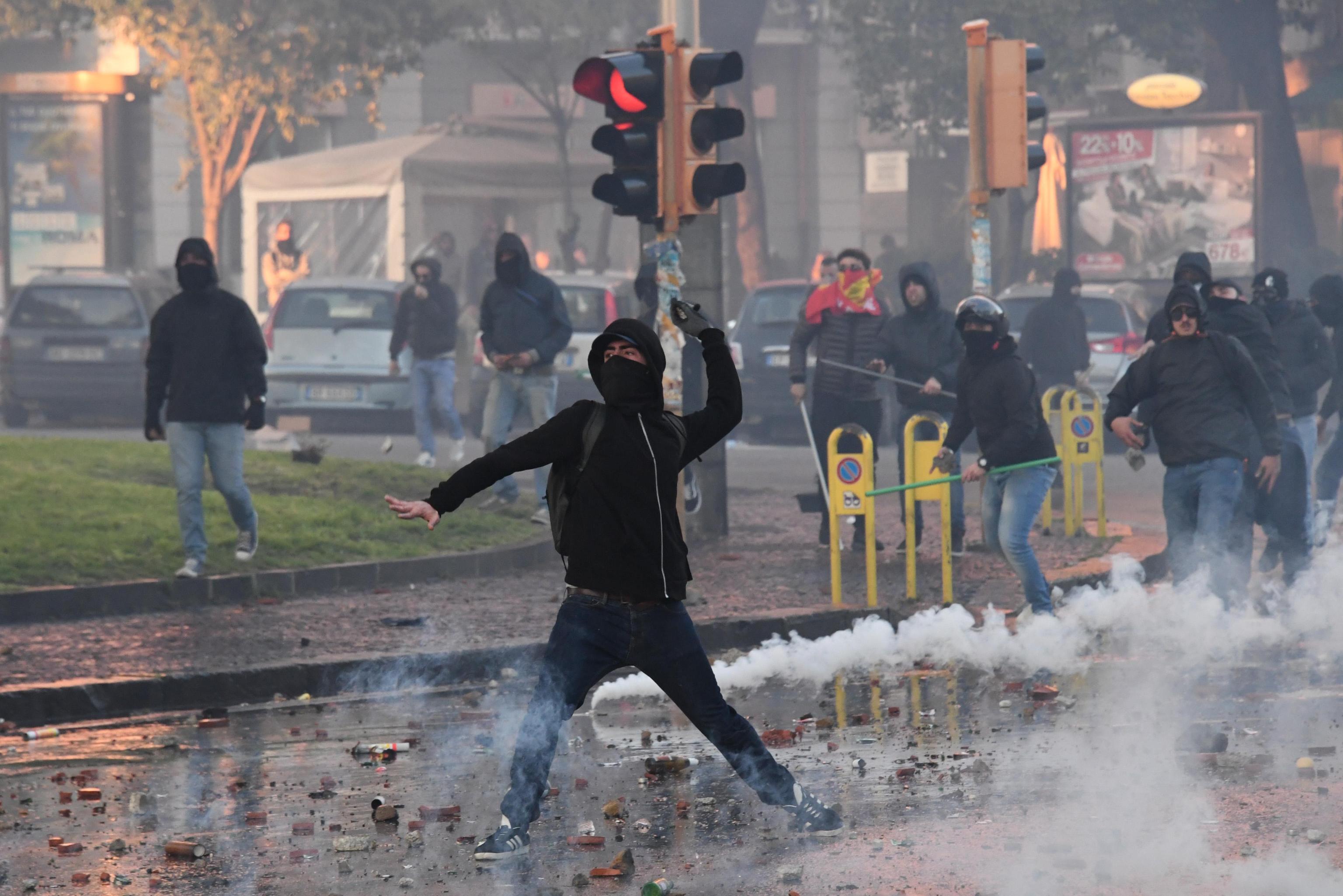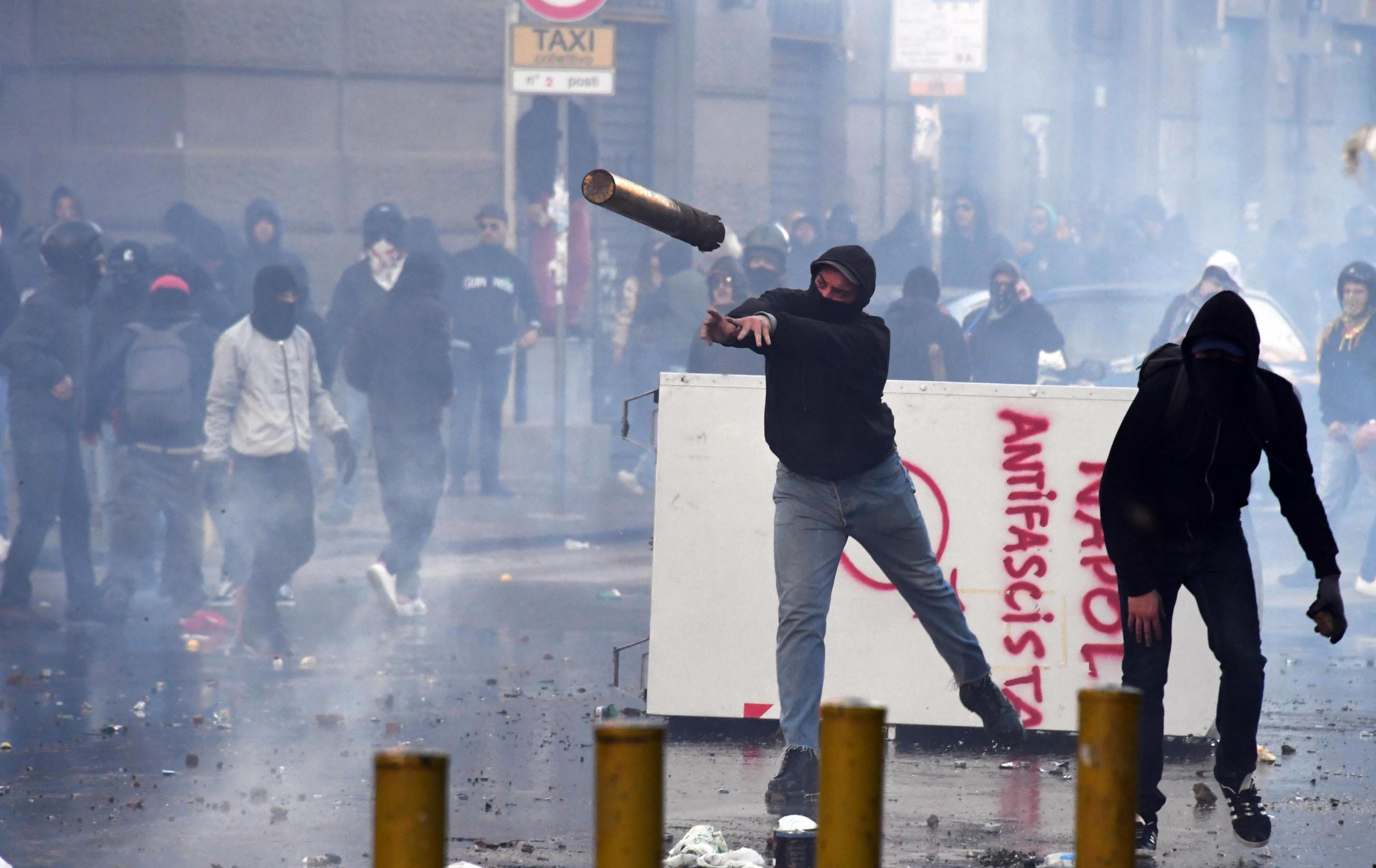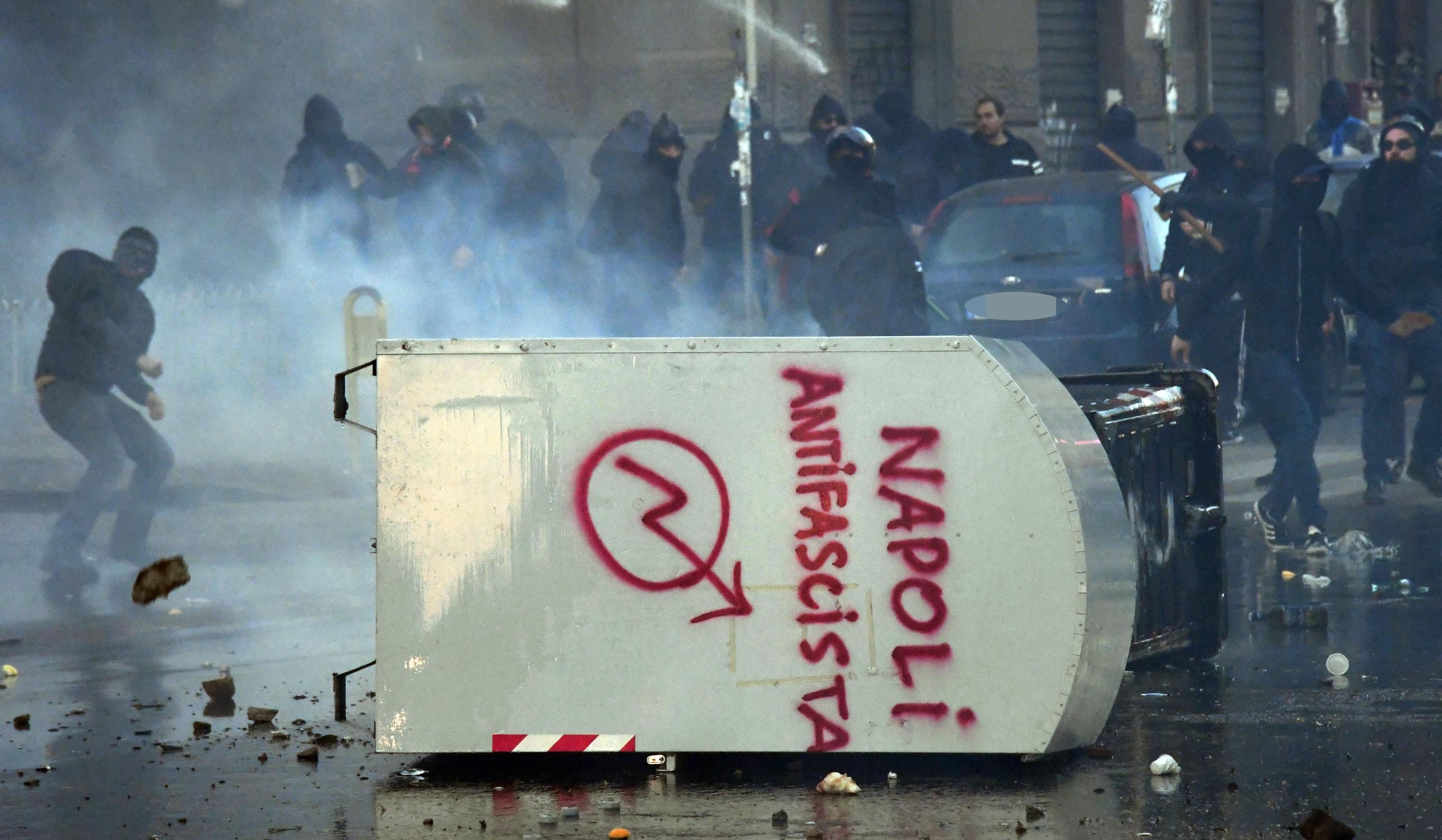 Seguono minuti di vera e propria guerriglia urbana davanti alla stazione dei Campi Flegrei, con le forze dell’ordine costrette a indietreggiare prima di riorganizzarsi e respingere i facinorosi con l’aiuto di idranti e lacrimogeni per oltre un chilometro. Ciò che resta del corteo deve rinculare lungo viale Giulio Cesare per poi disperdersi definitivamente a via Consalvo.