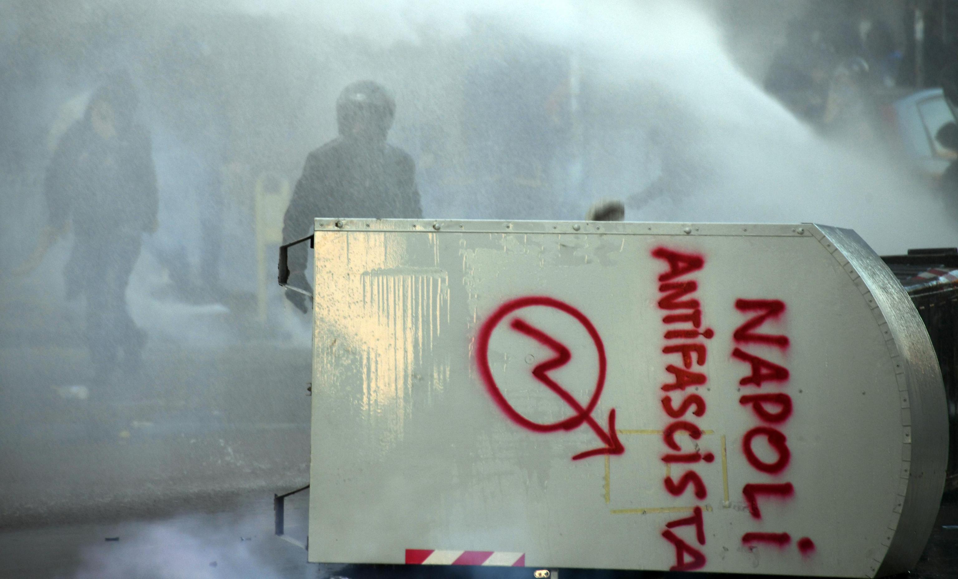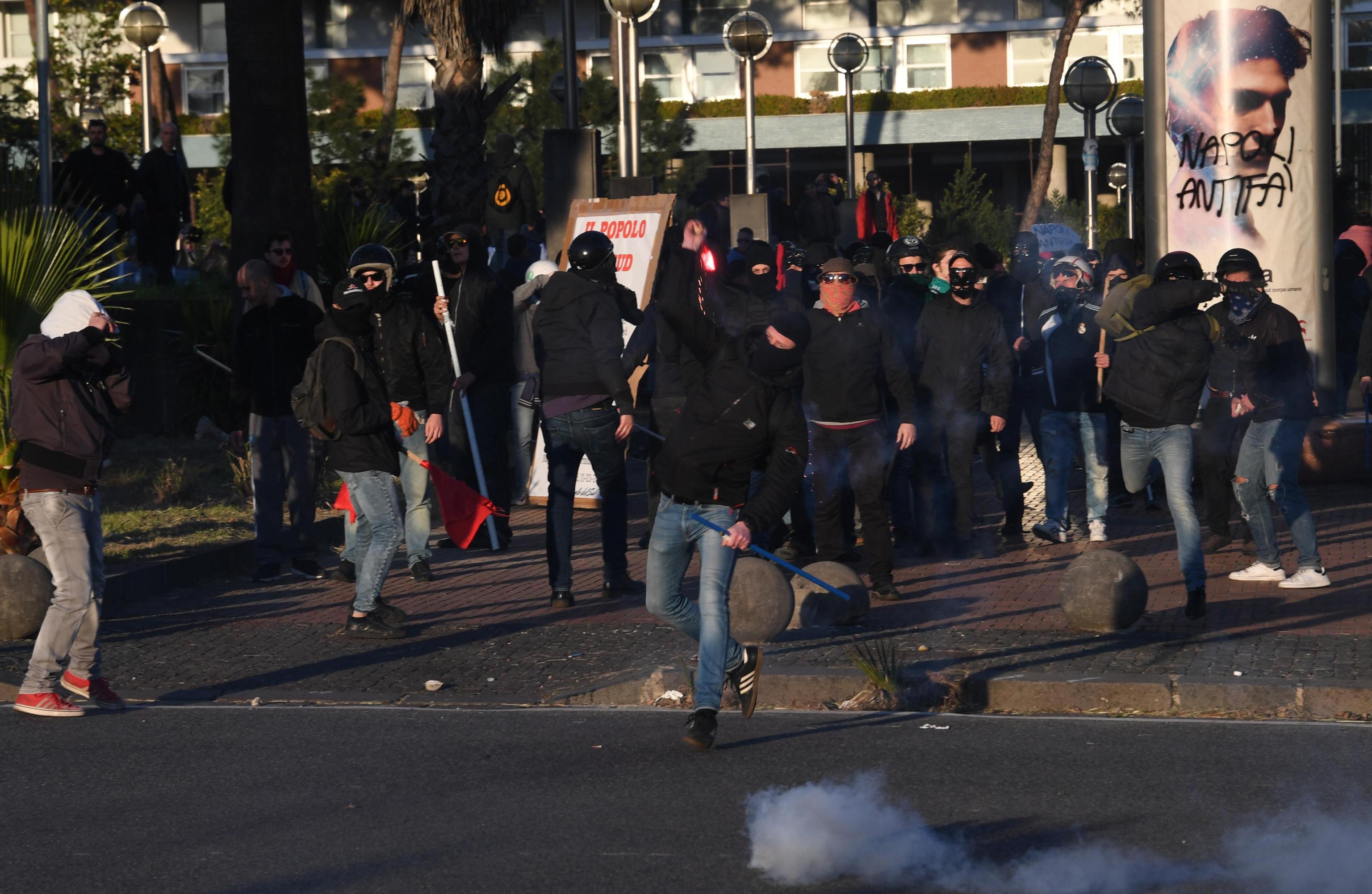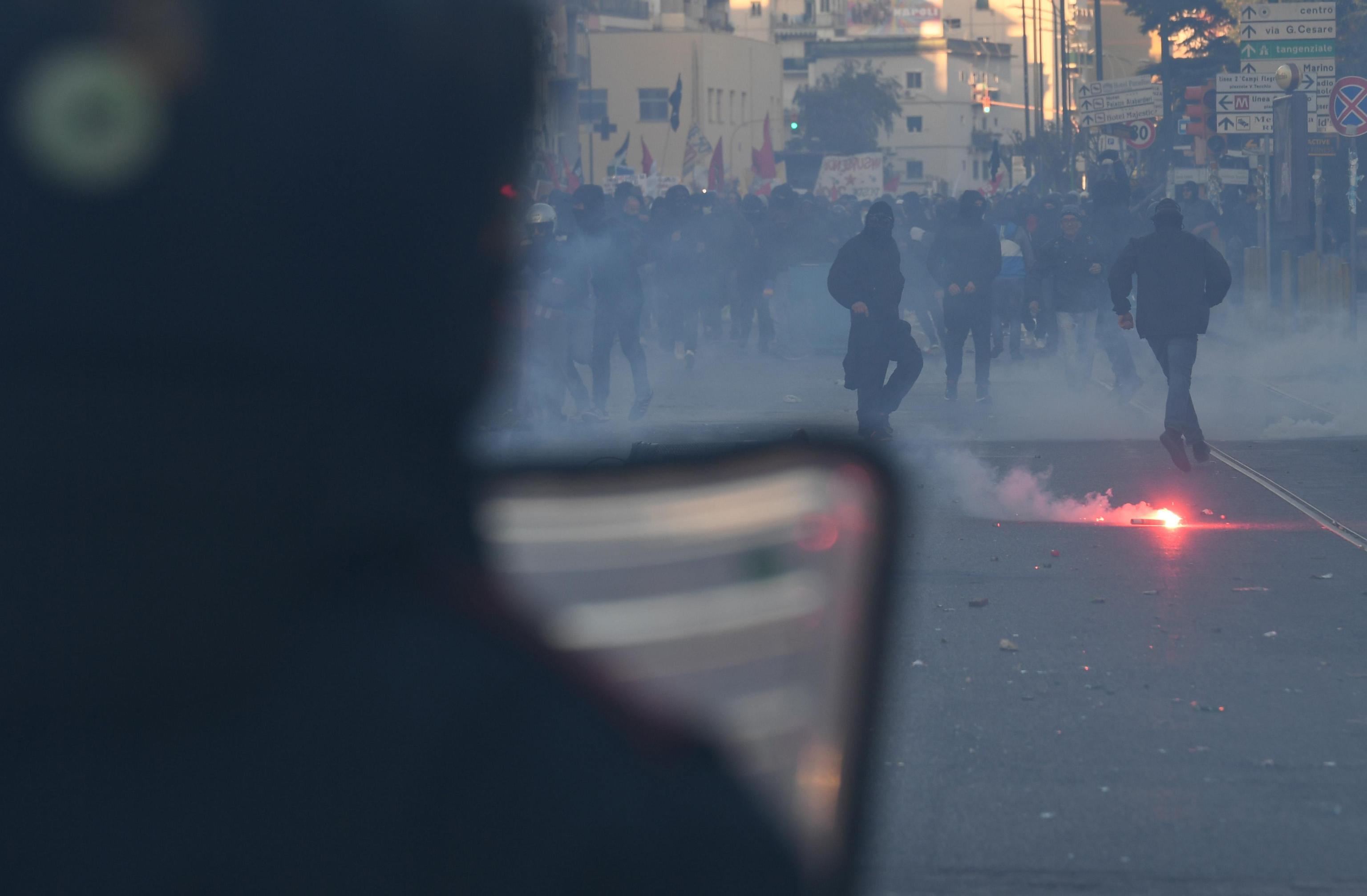 Seguono minuti di vera e propria guerriglia urbana davanti alla stazione dei Campi Flegrei, con le forze dell’ordine costrette a indietreggiare prima di riorganizzarsi e respingere i facinorosi con l’aiuto di idranti e lacrimogeni per oltre un chilometro. Ciò che resta del corteo deve rinculare lungo viale Giulio Cesare per poi disperdersi definitivamente a via Consalvo.
