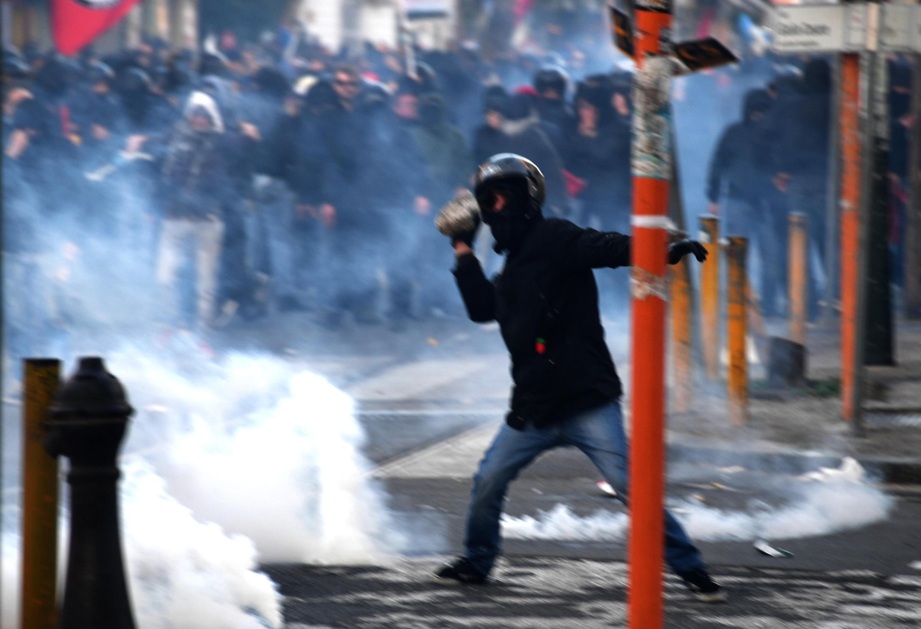 Finisce con il quartiere Fuorigrotta ostaggio della guerriglia urbana per 45 minuti, ridotto a un campo di battaglia con macchine devastate, segnali stradali divelti, cassonetti dei rifiuti dati alle fiamme, la gente presa dal panico che si rifugia nei palazzi e nei negozi, tre persone arrestate e tre denunciate tra gli attivisti dei centri sociali e trentaquattro feriti (28 tra polizia e carabinieri, 6 tra i manifestanti) per un pomeriggio di violenza che a Napoli non si ricordava da tempo, dalla riunione della Bce a ottobre 2014.