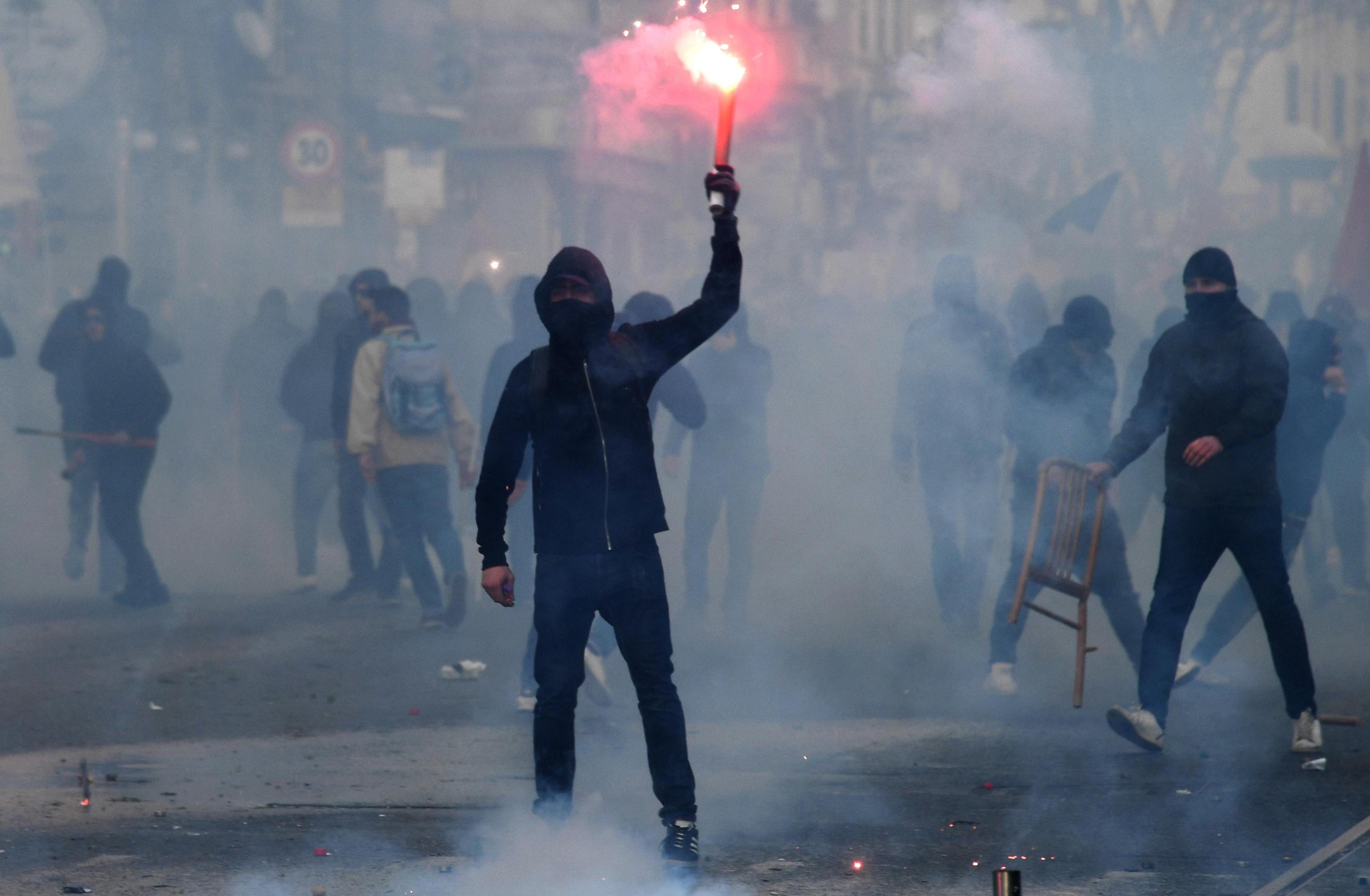 Clashes during demonstrators protest against the visit of the Leader of Italian 'Lega Nord' (North League) party, Matteo Salvini, in Naples, Italy, 11 March 2017. Riot police moved in Saturday to quell violent protests in Naples sparked by the first major rally in the southern city by the anti-immigrant Northern League leader. Police fired tear gas and water cannons against the protesters, who tossed bottles, rocks and Molotov cocktails their way. ANSA / CIRO FUSCO