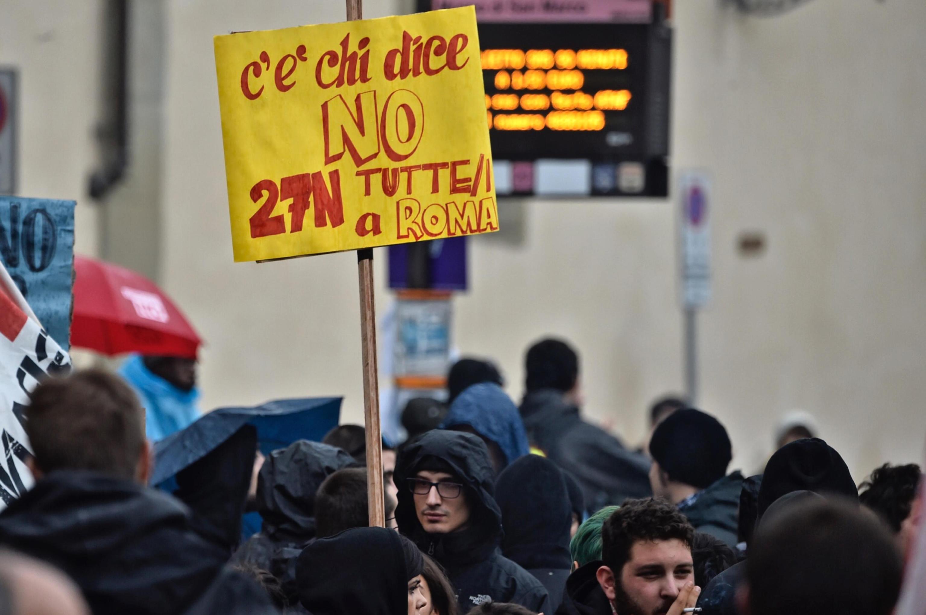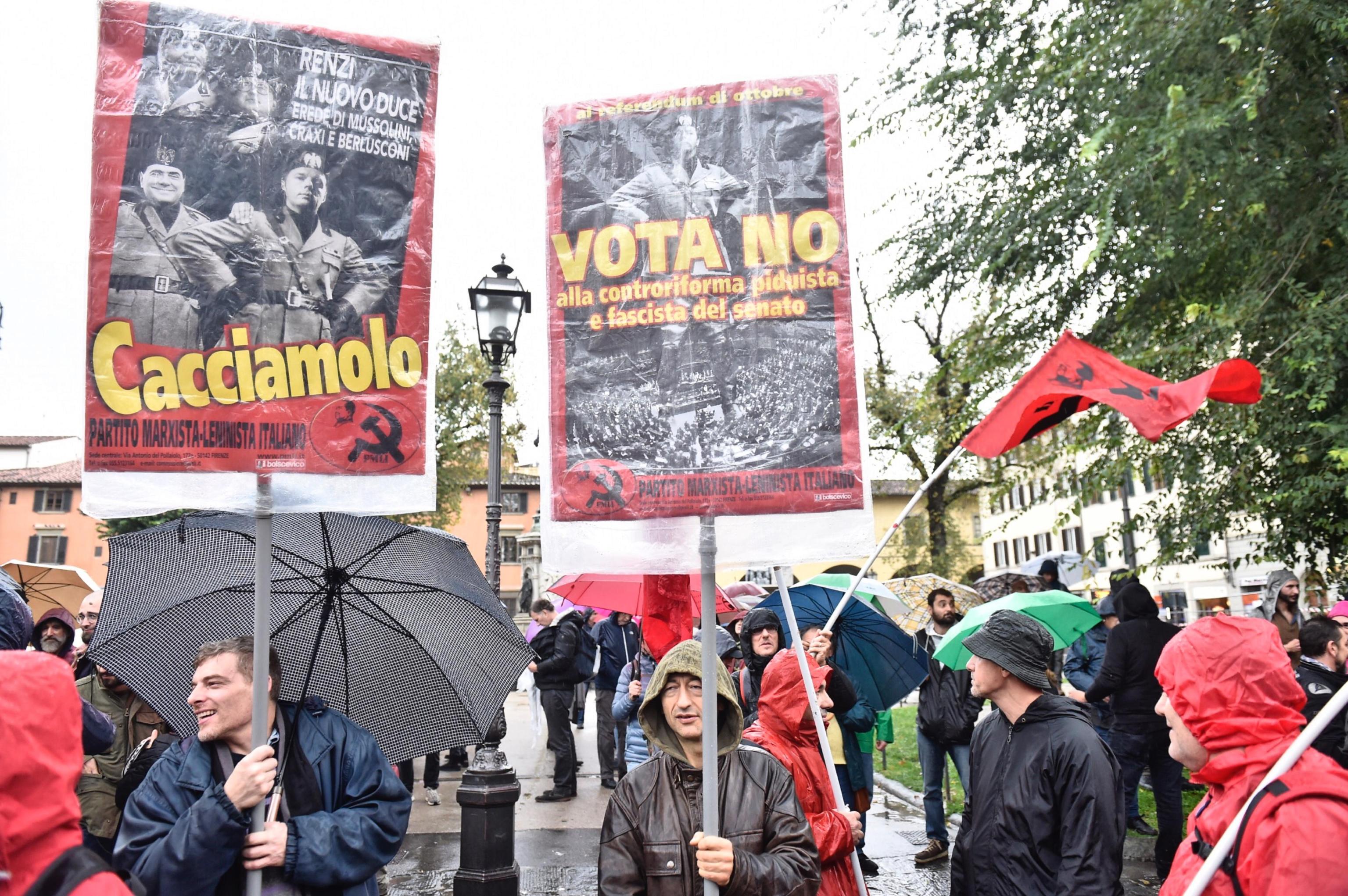 “Cogliamo l’occasione continuano gli organizzatori per annunciare una grande manifestazione il 24 novembre a Roma, con un concerto, musica e parole per dire No alla riforma Costituzionale”. “Oggi in Italia c’è un problema di democrazia – spiegano ancora -, ma da oggi dobbiamo decidere noi, il popolo quali sono i nostri bisogni e la riforma costituzionale va nella direzione opposta”. “Siamo qua – hanno concluso gli organizzatori parlando con i giornalisti – per dire che se Renzi vuole confrontarsi con noi nel merito delle riforma noi siamo a Firenze e vogliamo andare alla Leopolda”. Tra i manifestanti anche gli esponenti del Comitato contro il salva-banche. Numerosi gli striscioni contro Renzi ed il governo.