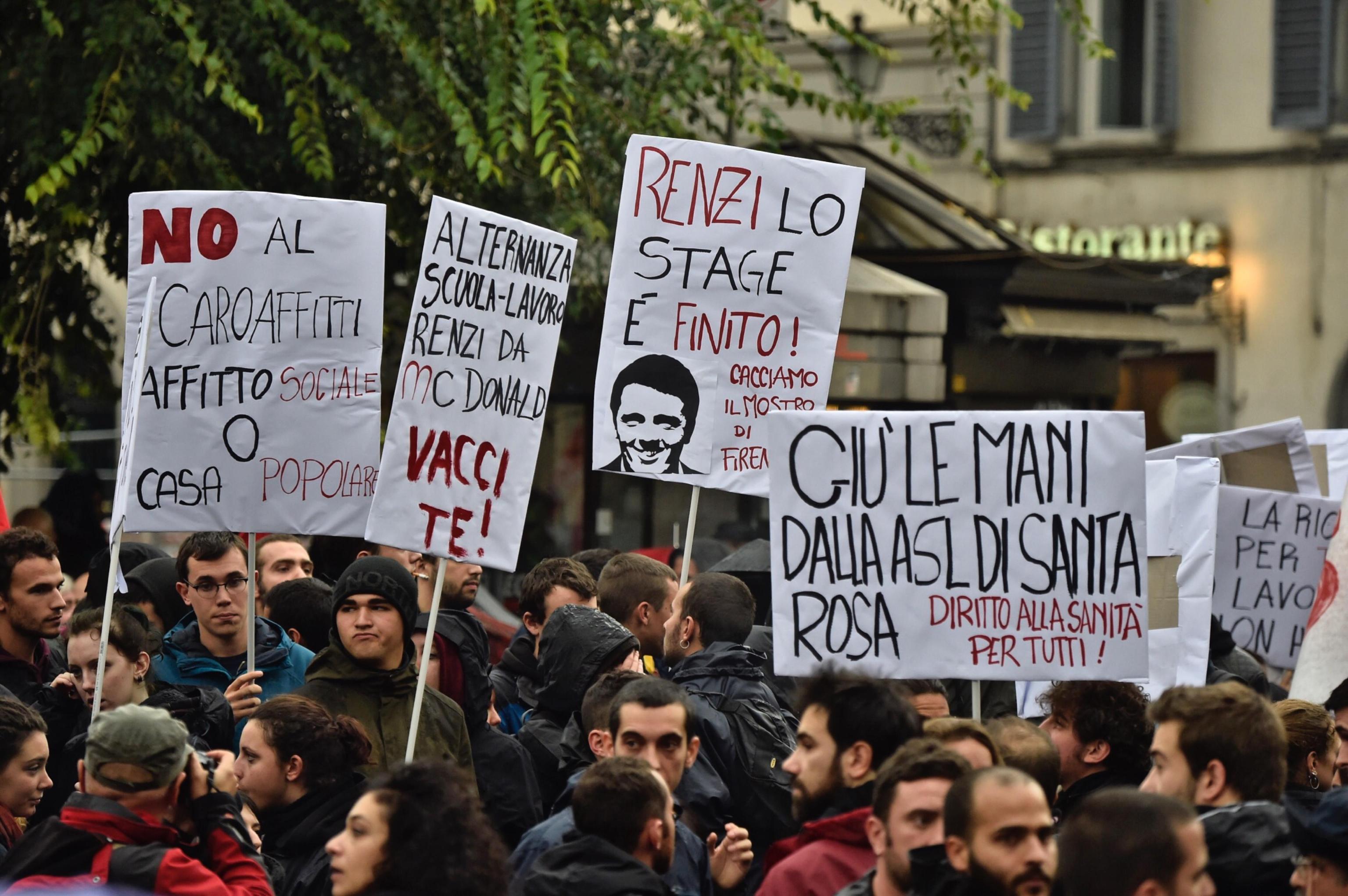 Le voci dei contestatori. “Lo abbiamo già detto ieri e lo ribadiamo ora non accettiamo il divieto imposto dal questore, il concentramento è previsto per le 15 ed è nostra intenzione arrivare alla Leopolda”. Così Luca Toscano, uno degli organizzatori della manifestazione che dovrebbe muoversi tra poco da piazza San Marco a Firenze, con lo slogan ‘No a Renzi, No al referendum’. Secondo gli organizzatori della manifestazione “il presidente del consiglio continua con la sua idea folle verso questa città e verso il Paese che considera il cortile di casa sua”. Alla manifestazione sono presenti anche rappresentanti arrivati da Venezia (il comitato No alle grandi navi), dalle Marche, dalla Campania: “Siamo qui per rappresentare una realtà sociale che alla Leopolda non è rappresentata quella dei giovani che lavorano con i voucher, della persone sotto sfratto, la nostra è una piazza aperta”, hanno concluso gli organizzatori della manifestazione.