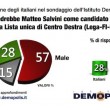 ROMA – La Lega Nord di Matteo Salvini guida il centrodestra e con il 15,5% si conferma prima forza di opposizione, mentre Forza Italia si ferma poco sopra l’11% e Fratelli d’Italia al 4,3%. Se si presentassero uniti alle elezioni si aggiudicherebbero un temibilissimo 29% dei voti. E’ quanto emerge da un sondaggio condotto dall’Istituto Demopolis.