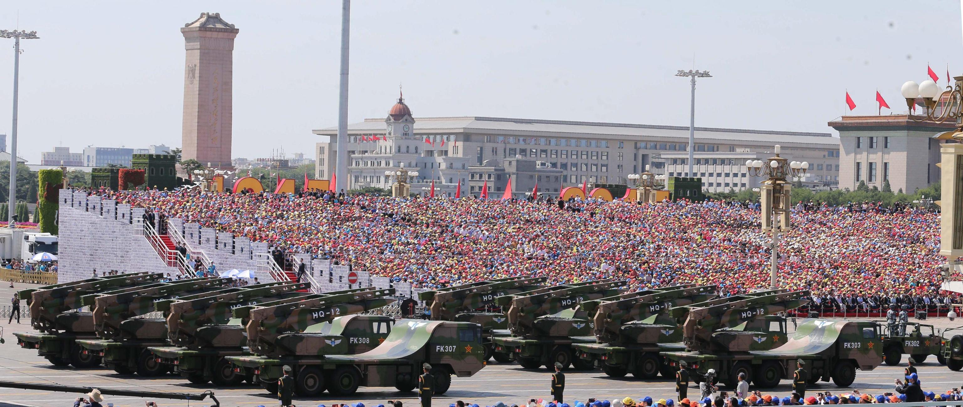 Ma sarà su Piazza Tienamen che l’imponente dispiegamento militare davanti alla folla darà lo spettacolo più impressionante. Tutti i giornali concordano titolando la Cina “mostra i muscoli”. E in effetti insieme ai 12mila uomini e donne impegnati, tra i 500 mezzi militari di ogni tipo, spiccherà la prima esibizione, se le indiscrezioni trovano conferma, del sistema d’arma più importante che verrà fatto sfilare oggi, il missile balistico anti-portaerei Dong Feng DF-21D, versione antinave del missile balistico a medio raggio DF-21, in grado di imbarcare anche testate atomiche, modificata per colpire le portaerei statunitensi.